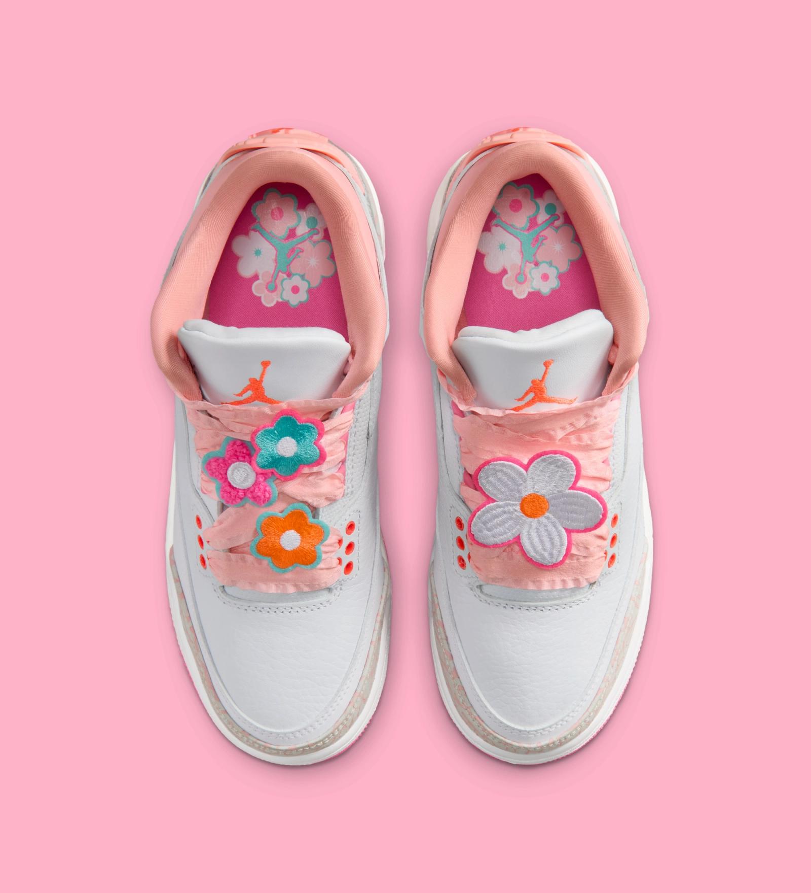 Jordan 3 tiếp tục là một trong những dòng giày được Jordan Brand làm mới với nhiều concept đa dạng, và lần này là một thiết kế mang cảm hứng floral nhẹ nhàng.