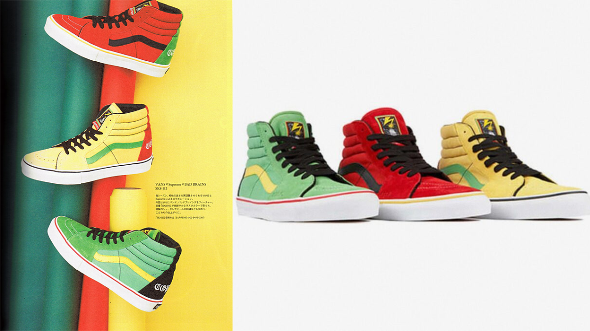 Bad Brains, ban nhạc hardcore đến từ Washington DC, đã hợp tác với Supreme và Vans để thể hiện tình yêu của họ đối với nhạc reggae. Mẫu giày Sk8-Hi, một biểu tượng lâu đời của làng nhạc hardcore Mỹ, được lựa chọn bởi các thành viên Bad Brains gồm Dr. Know, Darryl Jennifer và Earl Hudson. Sk8-Hi được ưa chuộng bởi độ bền và phong cách trượt ván, khác biệt hoàn toàn với vẻ ngoài nổi bật của Dr. Martens, thương hiệu gắn liền với phong cách punk do Vivienne Westwood – “bà đỡ” của dòng nhạc này – lăng xê. Bộ sưu tập này ra mắt vào năm 2008.