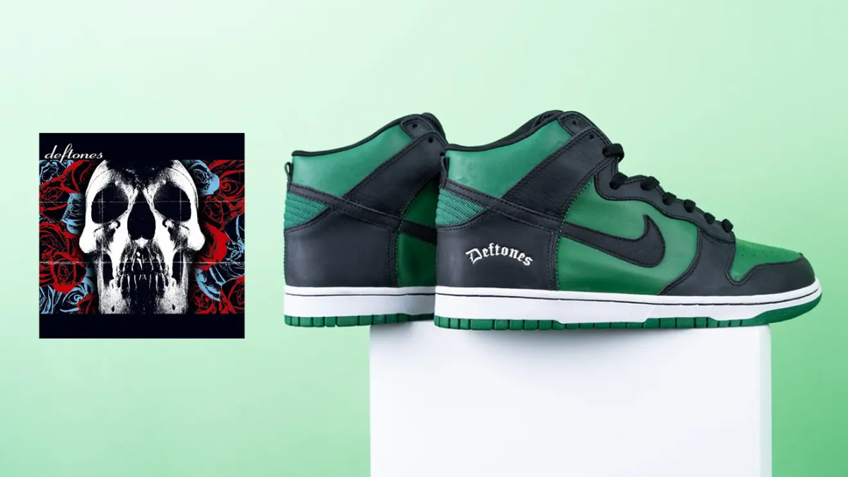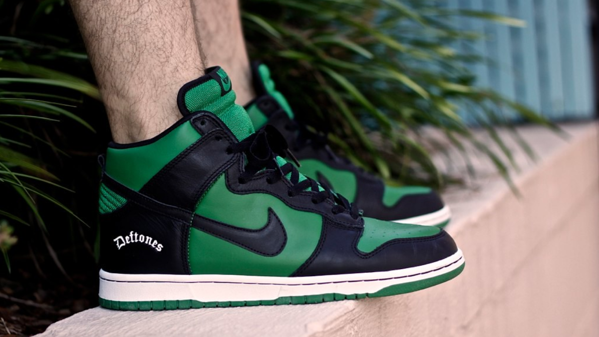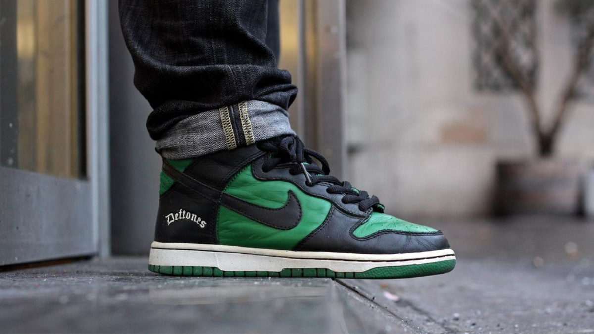 Xuất hiện lần đầu tiên vào năm 2003, Nike Dunk High ‘Deftones’ được thiết kế với tông màu đen và xanh lá, sử dụng chất liệu da full-grain và vải canvas cùng tông. Điểm nhấn đặc biệt là thương hiệu Deftones màu trắng được in nổi bật trên lớp phủ gót giày. Đôi Dunk “lai” này được sản xuất độc quyền cho bạn bè và gia đình của ban nhạc, với tin đồn chỉ có 43 đôi được sản xuất. Thỉnh thoảng, một vài đôi xuất hiện trên thị trường thứ cấp, gần đây nhất, mức giá được rao bán lên tới 45.000 đô la Mỹ (chưa bao gồm phí vận chuyển)!
