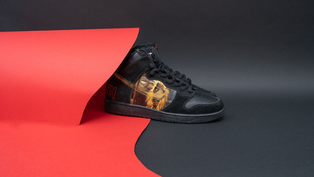 Giày Nike SB Dunk High phiên bản Iron Maiden là một sản phẩm tôn vinh ban nhạc, với dấu Swoosh trong suốt làm nổi bật linh vật rùng rợn và kiểu chữ mang tính biểu tượng của Iron Maiden. Thiết kế lấy cảm hứng từ album đầu tay của ban nhạc, đặc trưng với linh vật “Eddie the Head” do Derek Riggs minh họa. Chỉ được sản xuất giới hạn 24 đôi, đôi SB Dunk này vẫn là lựa chọn hàng đầu được các tín đồ giày sneaker săn đón.