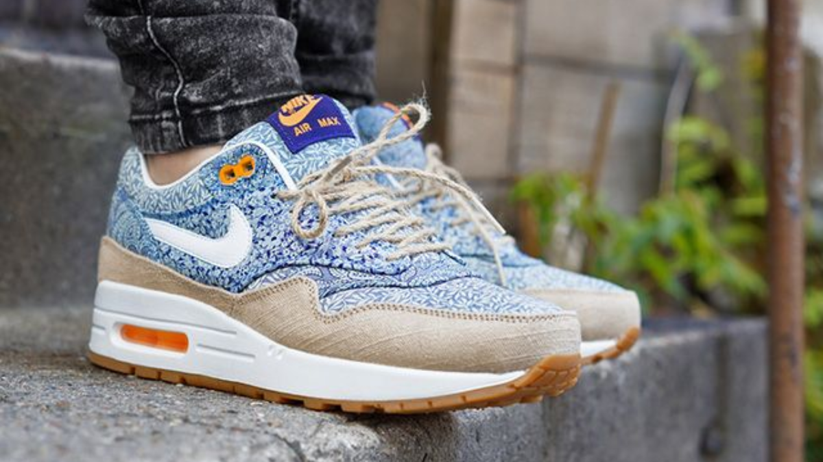 Sự hợp tác của Nike với các chuyên gia về vải Liberty đã có từ lâu. Vào năm 2014, Team Swoosh đã có sự hợp tác lớn với thương hiệu Anh cho bộ sưu tập xuân hè. Gói này có nhiều kiểu dáng đa dạng, bao gồm mọi thứ từ Roshe Run đến Air Max 90, Blazer High, Dunk Sky High, Internationalist và Air Max 1 nêu trên. Trên khắp các mẫu thiết kế, nhiều họa tiết Liberty khác nhau đã được sử dụng, bao gồm họa tiết Lora Willow những năm 1970, họa tiết Anoosha những năm 1930 và họa tiết hoa văn hình vương miện cuối thế kỷ 19. Đôi giày thể thao này cũng được loại bỏ cùng với một hộp đựng quần áo đi kèm.
