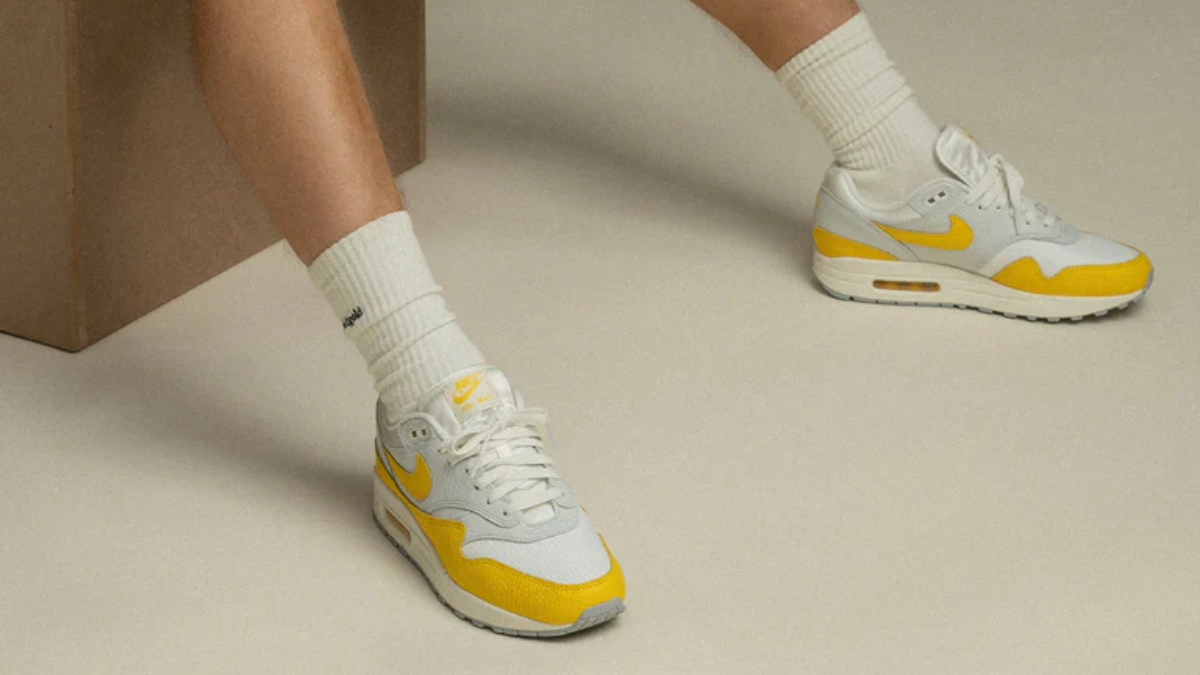 Một trong những đôi Nike Air Max 1 được quảng cáo rầm rộ nhất năm 2022 chắc chắn là ‘Tour Yellow’. Lần đầu tiên được tiết lộ vào giữa năm, Nike quyết định quay trở lại những điều cơ bản, trang bị cho AM1 thiết kế cổ điển nhưng với màu sắc mới táo bạo: vàng nóng. Chiếc AM1 này được làm bằng da lộn ở mũ giày và có màu vàng nổi bật trên dấu Swoosh, tấm chắn bùn và đáng chú ý nhất là bong bóng Air Max – nhắc nhở nhiều người rằng Nike đã đi được bao xa kể từ năm 1987.