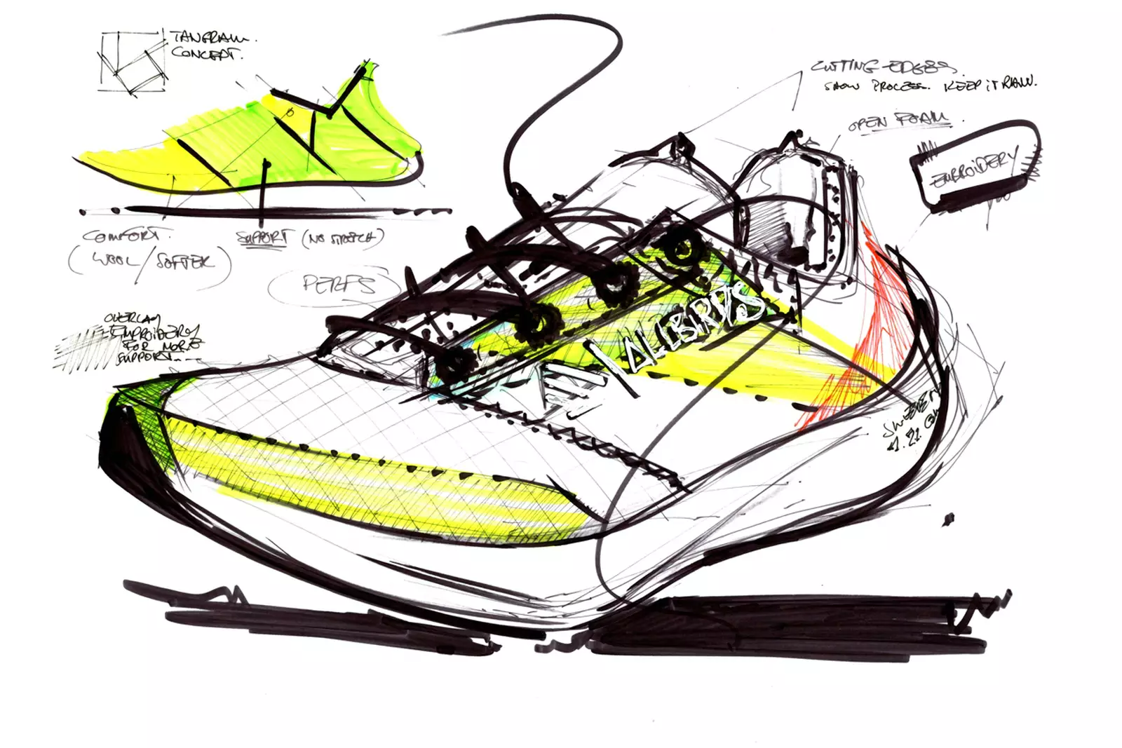 Để làm cho mọi thứ trở nên khó khăn hơn nữa, siêu đội adidas / Allbirds (adibirds? Alldidas?) Đã đặt cho mình một nhiệm vụ to lớn: tạo ra một đôi giày chạy hiệu suất chỉ tốn hai kg carbon dioxide tương đương (CO2e) để sản xuất. Để tham khảo, một đôi giày chạy bộ điển hình cần khoảng 13,6kg khí thải carbon dioxide và đôi giày của riêng Allbirds thường nặng khoảng 7,1kg CO2e. “[Hoàn thành] giai đoạn tạo và phát triển [thông qua COVID] trong vòng 12 tháng là một hành trình điên rồ,” Yaraghchian cười. “Nó giống như ai đó yêu cầu bạn leo lên đỉnh Everest trong hai ngày mà không cần mặt nạ dưỡng khí.” Jamie McLellan, Trưởng bộ phận Thiết kế, Allbirds, nói thêm: “Đôi khi, áp lực tạo ra những kết quả tuyệt vời. “Niềm đam mê về chủ đề bền vững đã khiến công việc diễn ra nhanh chóng,” Sam Handy, Phó Giám đốc Thiết kế của Adidas, khẳng định.