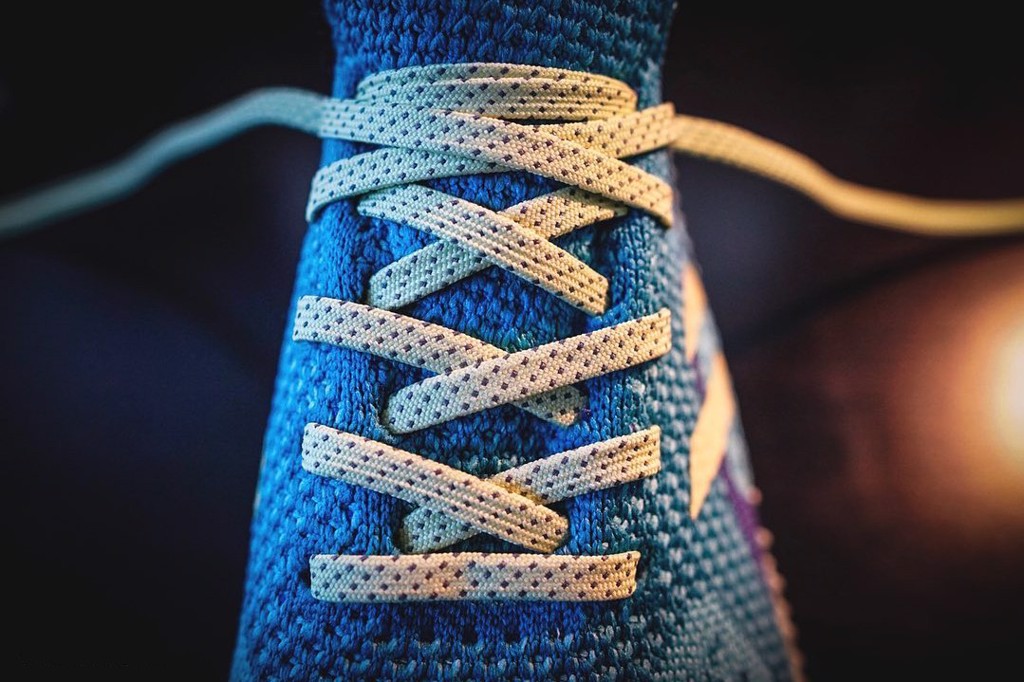 Nói về thiết kế lần này, phần uppers đã được các nhà thiết kế đến từ adidas xây dựng nên một bản hoà tấu màu sắc mang tên “Aqua” kết hợp hài hoà màu xanh biển nhạt, màu tím huyền bí và màu vàng bọt biển. Tất cả được đặt trên một cấu trúc dệt Primeknit nổi tiếng vô cùng linh hoạt đến từ thương hiệu này. Phần nửa trên đôi giày được đan giống như một chiếc tất phần cổ giày phá cách. Phối màu được sử dụng lên đó bao gồm bộ ba sắc thái xanh lam khác nhau và nhiều kiểu dệt để tạo họa tiết. Hình ảnh thương hiệu “Ba sọc” màu vàng bọt biển trên phần giữa thân giày được bao quanh bởi một dải hoạ tiết màu tím khép kín. Có ba tùy chọn màu sắc cho dây giày sẵn có: màu vàng với các đốm màu tím, màu tím với các đốm màu vàng hoặc màu xanh lam trơn, cho phép người mang tùy chỉnh theo cá tính của mình. Phần gót dày được tạo điểm nhấn bằng các chi tiết mới lạ như thêu một hàng chỉ dày màu xanh lam để giữ miếng da lộn cũng có màu xanh nhưng ở sắc thái nhẹ hơn. Phần dệt ở phía gót cũng có tông màu xanh lam nhẹ hơn hẳn nhưng tạo lên được sự tương phản thú vị cho bản hoà tấu biển cả này. Ở bên dưới, phần đế giữa của FUTURECRAFT có tông màu “Aero Green” dễ nhận biết và được thiết kế bằng công nghệ tổng hợp ánh sáng kỹ thuật số (Digital Light Synthesis) độc quyền của adidas, sử dụng ánh sáng và oxy để tạo thành một hệ thống đệm có cấu trúc lưới độc đáo, tạo các giác tốt nhất khi chạy.