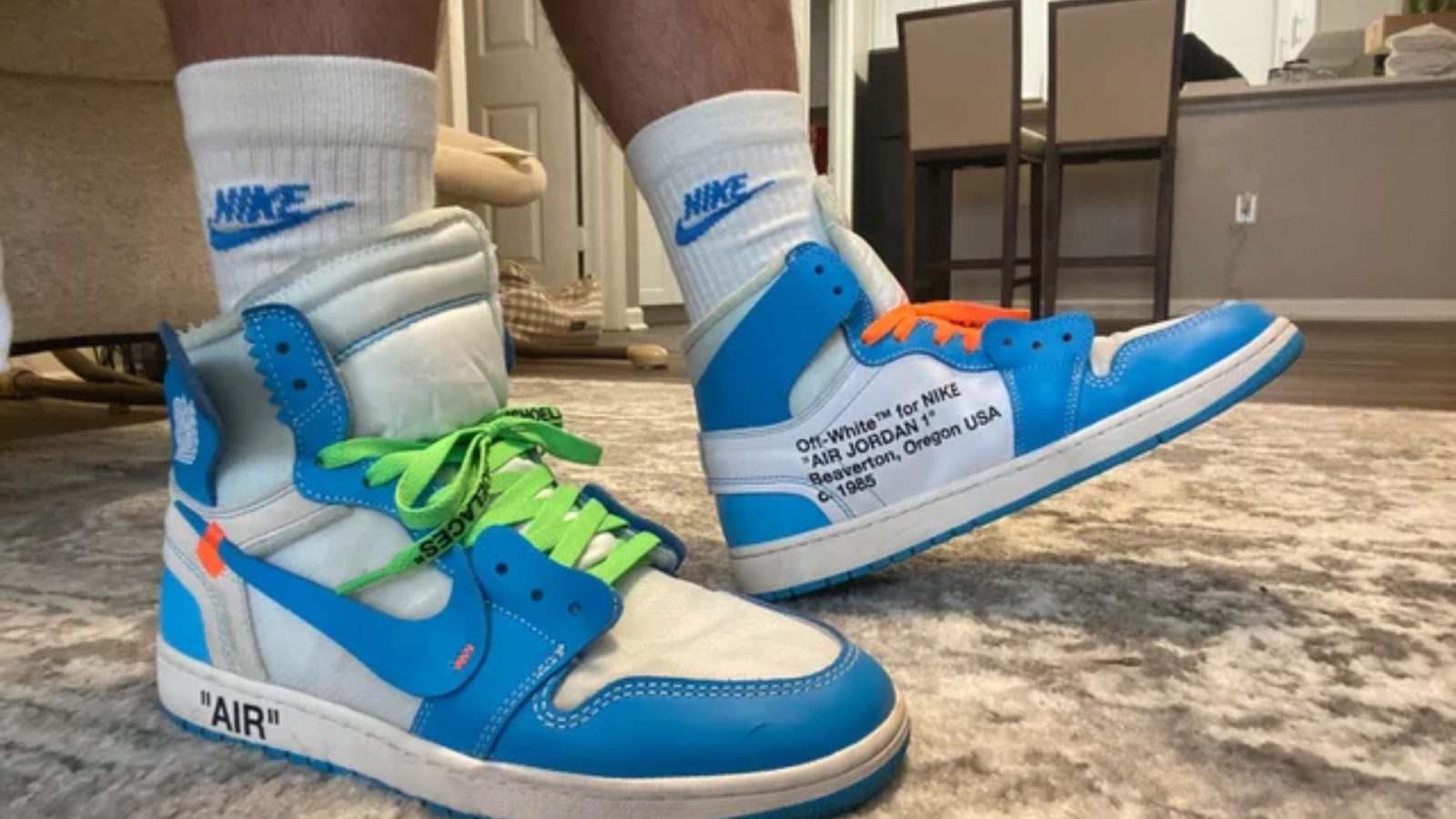 Vào năm 2017, vẫn tiếp tục làn sóng từ bản phát hành Frags trước đó, Jordan đã hợp tác với không ai khác ngoài nhãn hiệu Off-White của Virgil Abloh để tạo ra một phiên bản giày có phần phá cách. Bản phát hành này là một phần của dự án “The Ten” của bộ đôi, một bộ sưu tập mô phỏng lại những hình bóng mang tính biểu tượng nhất của Nike, chẳng hạn như Air Force 1, Air Max 90 và Blazer. Mỗi mô hình được thiết kế để gợi lên bản chất DIY, với chi tiết cắt bằng tay và dấu ngoặc kép nổi tiếng của Virgil và các họa tiết thẻ zip. Trong số toàn bộ bản phát hành, AJ1 là một trong những mẫu được tôn sùng nhất, với chiếc giày ngày nay thậm chí còn có mức phí bán lại từ 5.000 bảng Anh trở lên.