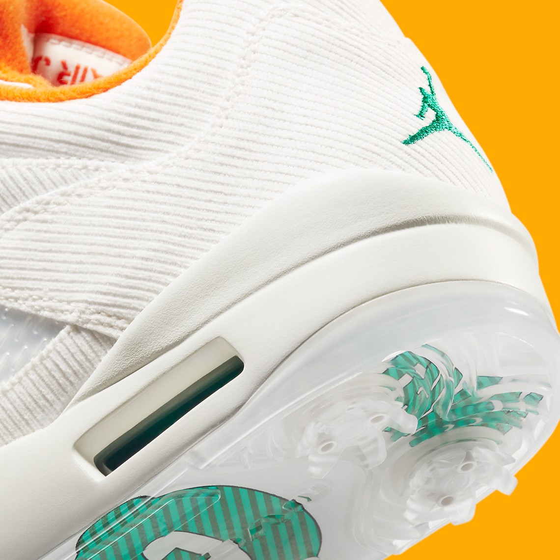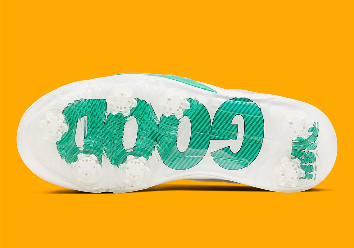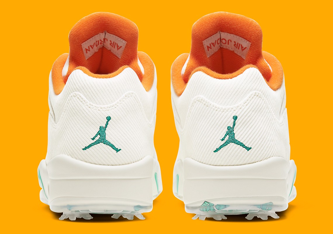 Để chuẩn bị cho giải Masters trên sân golf Augusta nổi tiếng vào giữa tháng 11 sắp tới, Jordan Brand đã cho ra mắt một phối màu hoàn toàn mới cho dòng giày Air Jordan 5 Golf-đôi giày đánh golf đã từng làm mưa làm gió trong quá khứ. Bề ngoài của đôi AJ5 này được thiết kế với những điểm nhấn màu xanh ngọc nằm ở midsole cũng như khóa ren và logo Jumpman. Trong khi đó phần lót trong màu cam sáng kết hợp với lớp vải nhung cánh buồm bao phủ toàn bộ đôi giày tạo đã tạo ra sự khỏe khoăn vượt lên trên cả sự tinh tế của một thể thao thiên về kỹ thuật nay. Phần đế ngoài có lẽ là điểm nhấn nhấn nổi bật nhất khi Nike đã in dòng chữ “Lucky Than Good” khá thú vị và dường như nó chính là một đặc điểm không thế thiếu của các vận động viên cũng như người ngươi nghiệp dư khi tham gia vào một trận đấu.