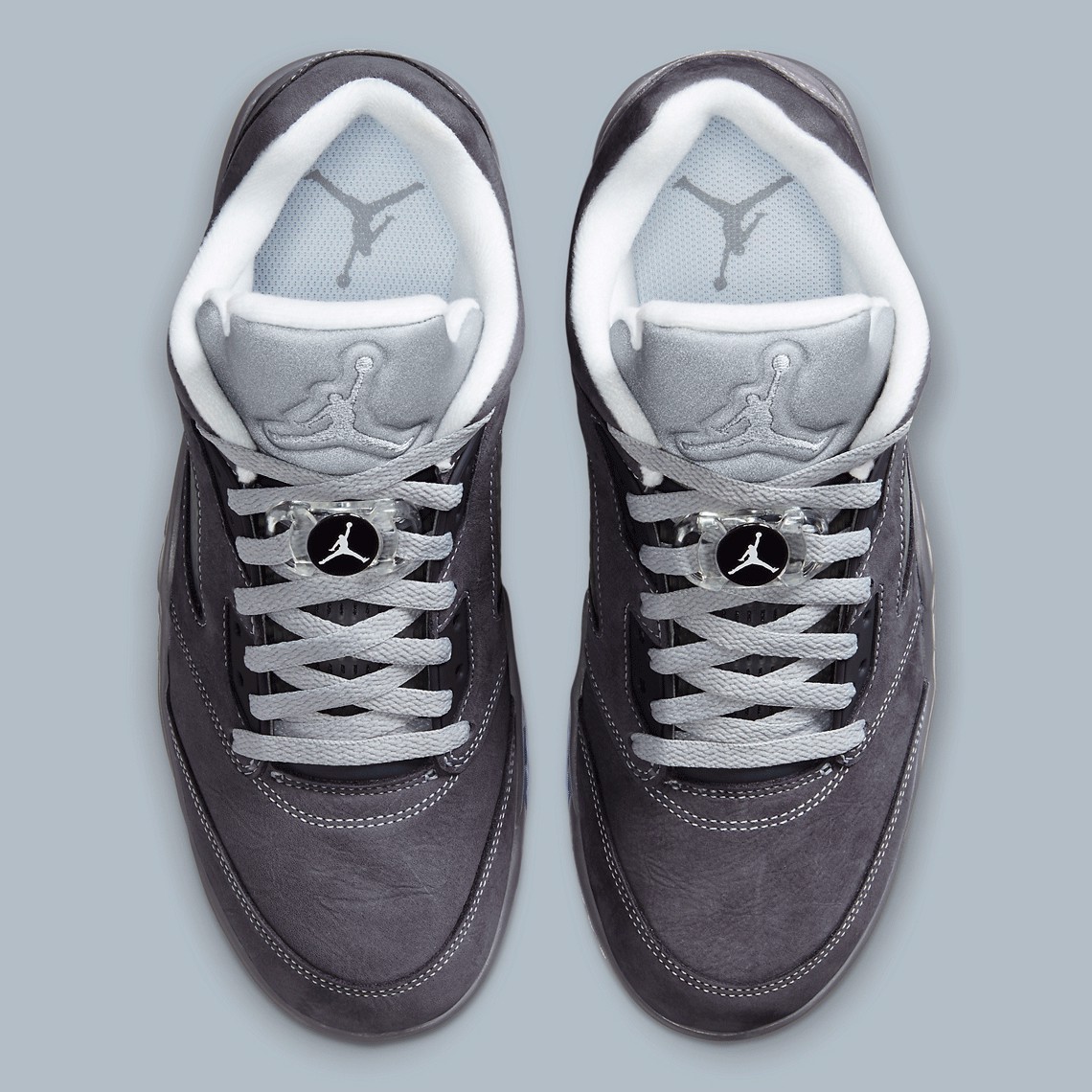 Gót bên hông bỏ qua logo “23” thêu, nhưng các gai có nhãn hiệu Jumpman giống như người tiền nhiệm chín năm tuổi; ở những nơi khác, các biểu trưng tiếp tục chọn vào bảng màu xám của giày thể thao, nhưng nút chuyển đổi ren được sửa đổi có biểu tượng màu đen.