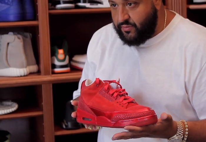 Khi siêu sao cầm đôi dép màu đỏ ruby, thực sự là Air Jordan 3 Retro ‘Legends of the Summer’, anh nhẹ nhàng vuốt ve chúng. Khaled giải thích lý do tại sao anh ấy yêu chiếc giày đặc biệt này đến vậy, và không, đó không phải là vì chiếc dép lấp lánh có thể đưa anh ấy trở lại Kansas, mà là: “Ya phải hiểu tại sao tôi yêu chúng đến vậy. Bạn biết tại sao mà? Khi bạn mặc nó vào, nó sẽ làm nên điều gì đó ”.