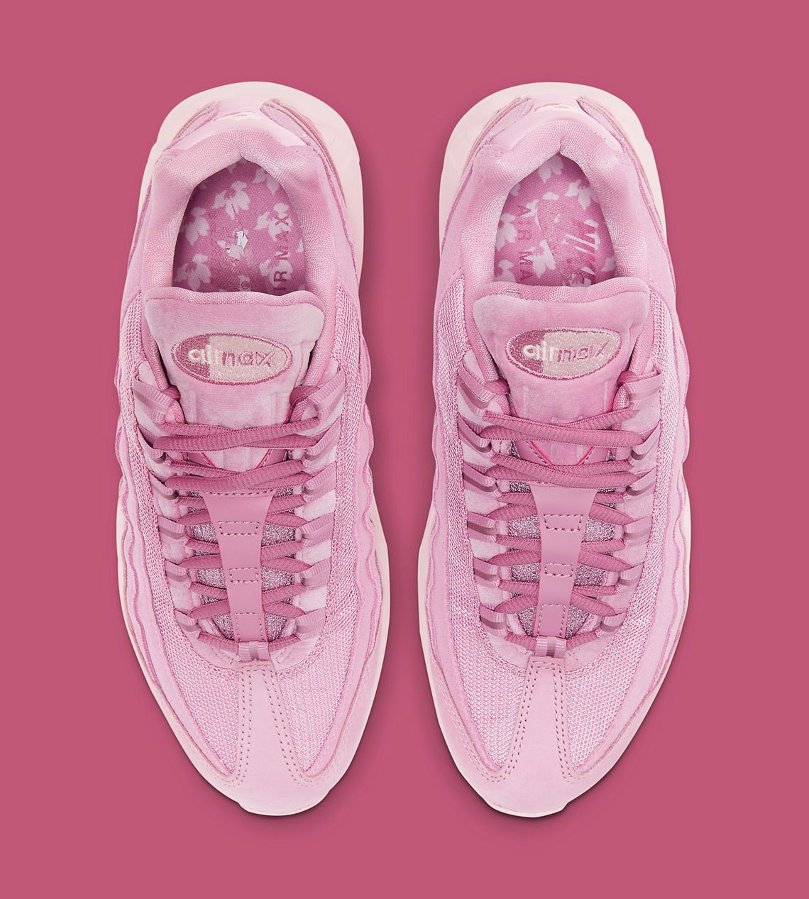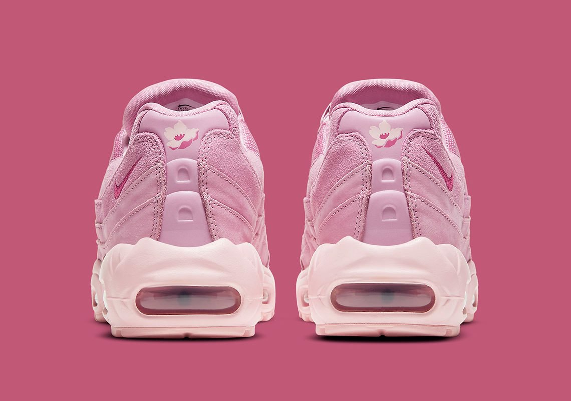 Đôi tiếp theo vẫn chủ đề thực vật nhưng lần này là về những loài hoa, để tôn lên sức mạnh của hoa là một chiếc Air Max 95 tông màu “Elemental Pink” chọn họa tiết của quốc hoa của Hàn Quốc, mugunghwa. Đây không phải là lần đầu tiên dòng giày này được trang điểm bằng hoa. Nhân dịp kỷ niệm 25 năm thành lập năm ngoái, Air Max 95 “Pollen Rise” có khóa dán bằng forsythia đã được phát hành độc quyền tại Hàn Quốc, trong khi Nhật Bản nhận được Air Max 95 “Cherry Blossom”.