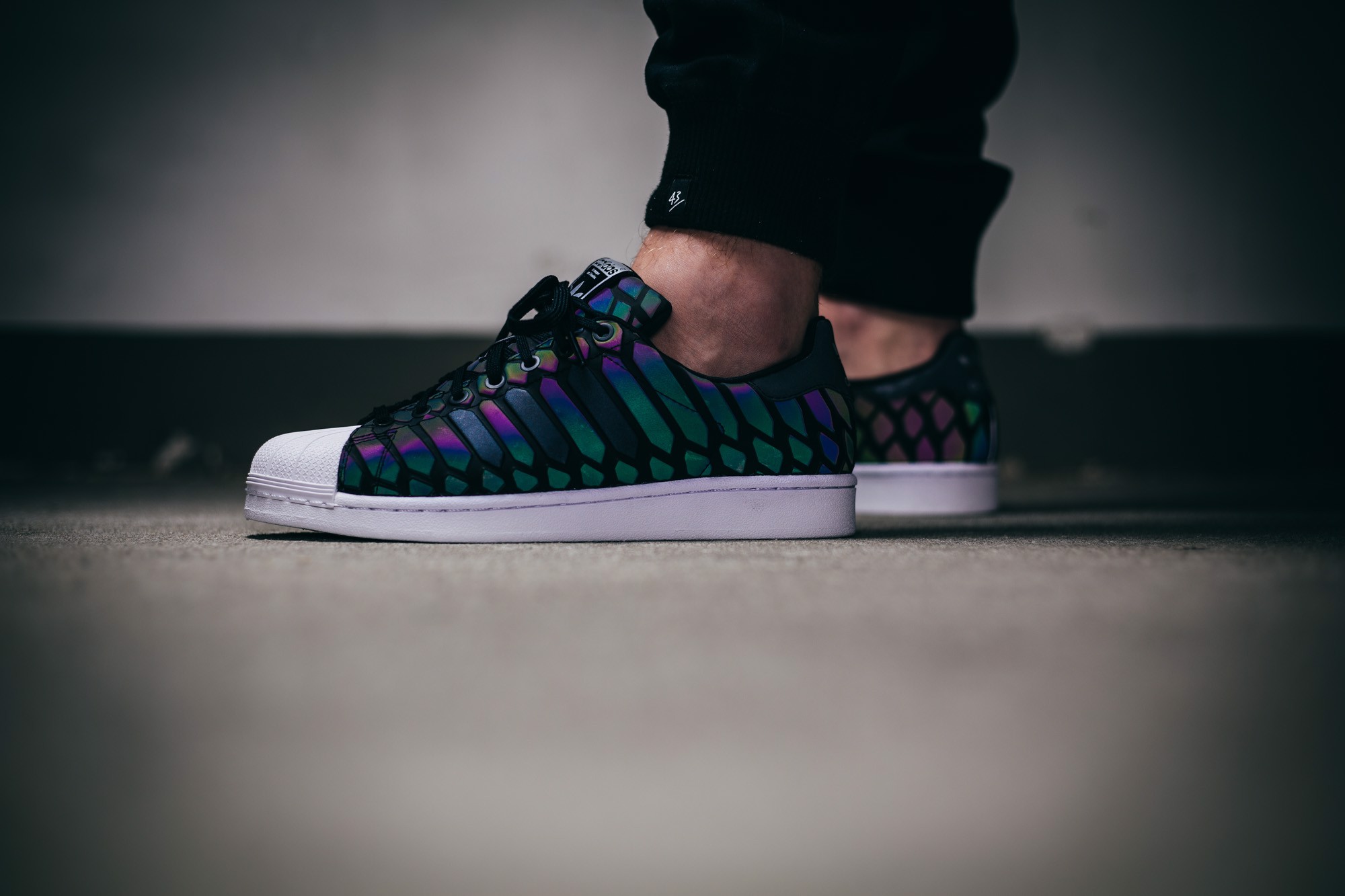 Sử dụng chất liệu XENO có khả năng phản chiếu ánh sáng và có được hiệu ứng đổi màu đặc biệt – adidas nhắm tới việc cho ra một concept đầy tính tương lai với sắc màu của sự phản chiếu và màu đen của đôi giày truyền thống. adidas cũng tập trung vào quân bài chiến lược lúc đó của mình trong “Xeno Black Pack” của mình là Superstar, ZX Flux và Metro Attitude.