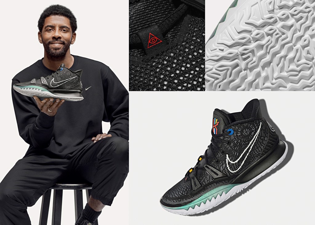 Đánh giá nhanh qua vẻ bề ngoài thì có thể dễ dàng nhận thấy Nike Kyrie 7 mang thiết kế từ sự kết hợp của Kyrie 6 và 1 khi mang họa tiết hàm cá sấu trong Kyrie 1 và miếng zoom tubol từ Kyrie 6.