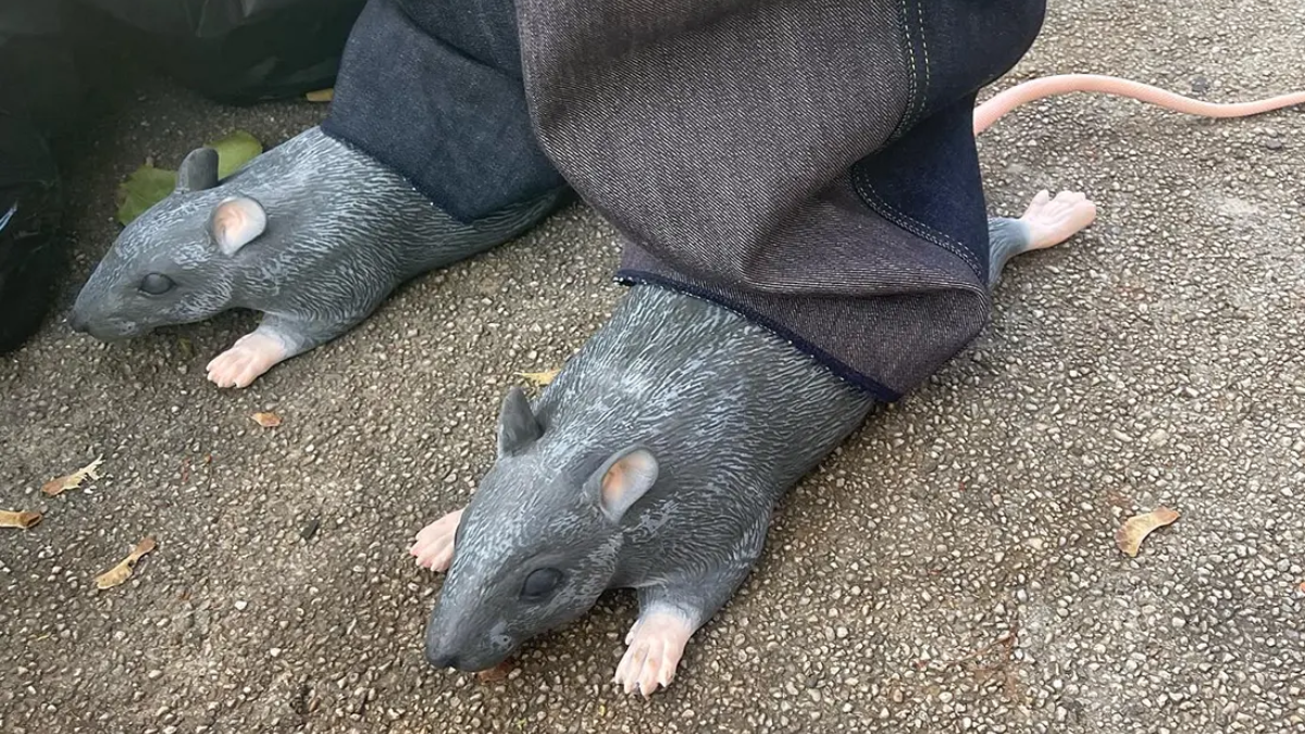 Nhà thiết kế Imran Potato, người từng cộng tác với Vans, được biết đến với những sản phẩm xa xỉ, và giờ đây anh đã vượt qua chính mình với một ý tưởng táo bạo: Rat Slides. Giống như đôi Dép Caveman của anh ấy, đôi này được thiết kế trông giống thật nhất có thể, với mắt, tai, bàn chân và thậm chí cả một cái đuôi dài bằng cao su, cũng như phần trên có họa tiết mô phỏng bộ lông xù của con vật.