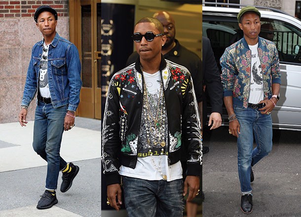 Pharrell luôn được xem là một rapper sành điệu bởi phong cách thời trang của mình và để lại nhiều dấu ấn khó phai qua từng bộ cánh anh mặc. Đề cao sự cá tính, năng động, Pharrell tạo ra cho mình một phong cách riêng mà ở đó anh có thể tài tình phối trang phục nữ giới sao cho thật đường phố.