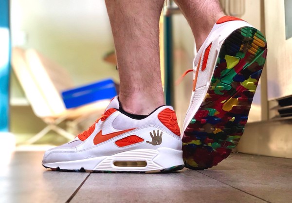 Vinh dự thiết kế phiên bản Air Max 90 nổi tiếng, cậu bé Mark Smith thật không để cho chúng ta phải thất vọng. Nhằm đánh dấu cột mốc 5 năm kể từ lần ra đời đầu tiên của BST vào năm 2003, phiên bản Air Max 90 mang trên mình phần upper màu trắng cực kỳ clean, được nhấn nhá bằng những chi tiết màu cam ở khu vực hệ thống dây, gót và dấu Swoosh. Bên cạnh đó, đôi giày còn gây được ấn tượng bởi hình in bàn tay nhỏ ở khu vực phía sau dấu Swoosh. Ở phần lưỡi gà chính là logo của của bệnh viện OSHU ở chiếc bên phải, còn branding của Nike thì xuất hiện ở bên còn lại. Điểm đặc biệt nhất của đôi giày chính là phần lót bên trong mang những họa tiết đầy mê hoặc dưới sắc màu xám.