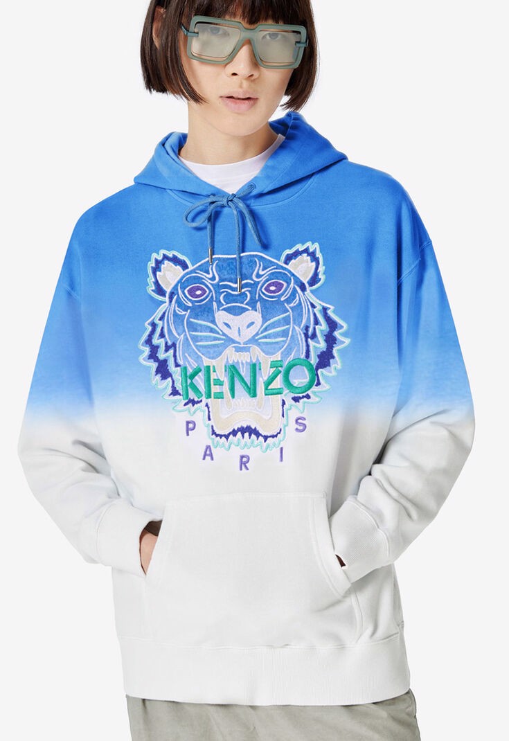 Kenzo Tiger thường được đặt trên nền tối hơn, với các đường viền màu khác nhau, tùy thuộc vào kiểu dáng và loại vải. Logo chính thức của Kenzo cũng được sử dụng trên một bộ sưu tập quần áo, và logo này đã dung hòa thành công phong cách của phương Đông và phương Tây, truyền thống và đương đại, đồng thời là kết quả của sự độc đáo và táo bạo trong thiết kế. Logo Kenzo chính được trang trí bằng những bông hoa thể hiện tốt một trong những triết lý cốt lõi của nhà Kenzo – sự tôn vinh thiên nhiên. Tuy nhiên, thương hiệu Kenzo đã chuyển đổi thành một thương hiệu dành riêng cho những cá nhân táo bạo và táo bạo, và logo con hổ đã truyền đạt điều này một cách rõ ràng và tôn trọng ý tưởng ban đầu.