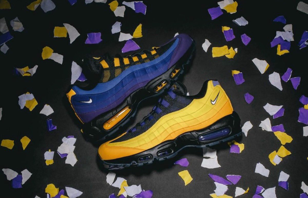 Chắc chắn rằng việc nằm trên Am 95 sẽ đem lại độ êm ái và thoải mái sẵn có của đôi giày chạy bộ cực tốt của the Swoosh. Phiên bản đặc biệt hứa hẹn sẽ ít giới hạn hơn Game Time (2015). Nike 95 Lakers kết hợp lại chủ đề của nhượng quyền thương mại Los Angeles, tất cả đều được trang bị cấu trúc bất đối xứng. Các chi tiết phản quang 3M mang đến sự hoàn thiện cuối cùng cho màu PE hạ cánh vài ngày trước Ngày Air Max 2021