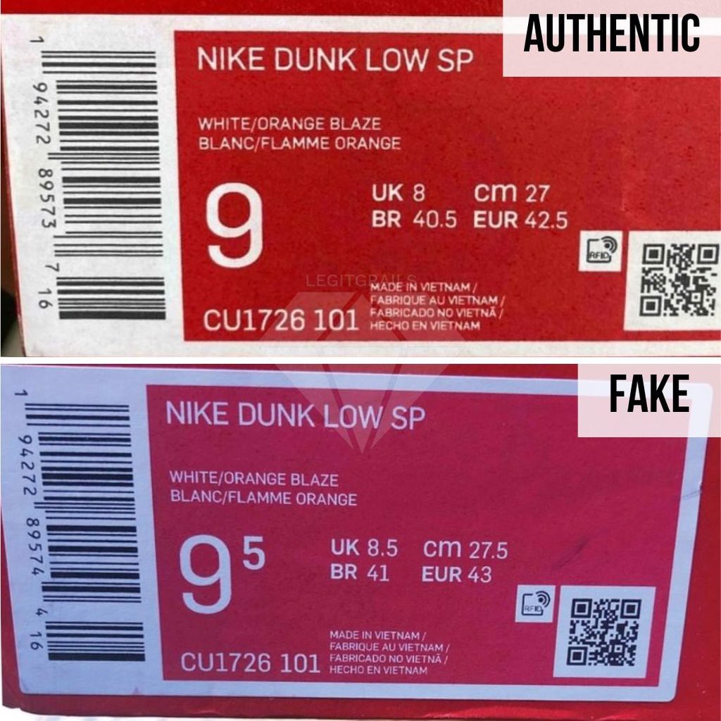 Hầu hết, những đôi giày giả có văn bản của chúng bị đặt sai vị trí, vì nó thường không được căn giữa ở giữa tab