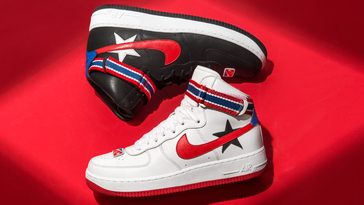 Bộ sưu tập bao gồm nhiều loại quần áo và phụ kiện, bao gồm áo khoác bomber, áo thun và quần nỉ thể thao, nhưng tâm điểm chính là phiên bản Air Force 1 mới nhất của Tisci. Tisci mang đến một phiên bản cổ cao của kiểu giày này với hơi hướng yêu nước – phần thân giày màu trắng nổi bật với các miếng vá phong cách NBA ở mũi giày, trong khi biểu tượng Swoosh màu đỏ phủ ngang thân giày, xếp chồng lên chi tiết ngôi sao đặc trưng của Tisci bên dưới. Phần đế giữa của giày cũng được sơn màu đỏ, đi kèm với dây đeo mắt cá chân sọc đỏ, trắng, xanh gợi nhớ đến sự hợp tác ban đầu giữa Nike và Tisci. Một phối màu khác với các chi tiết tương tự trên nền đen cũng được ra mắt.