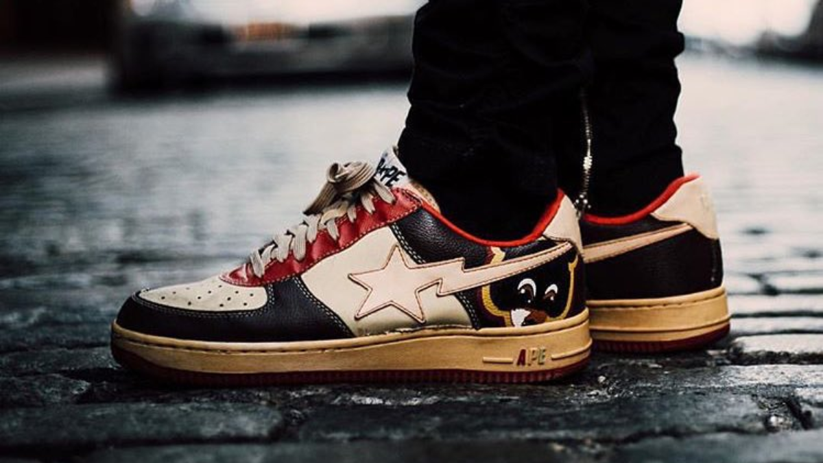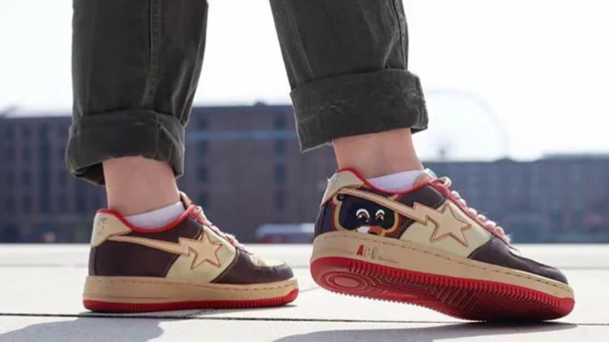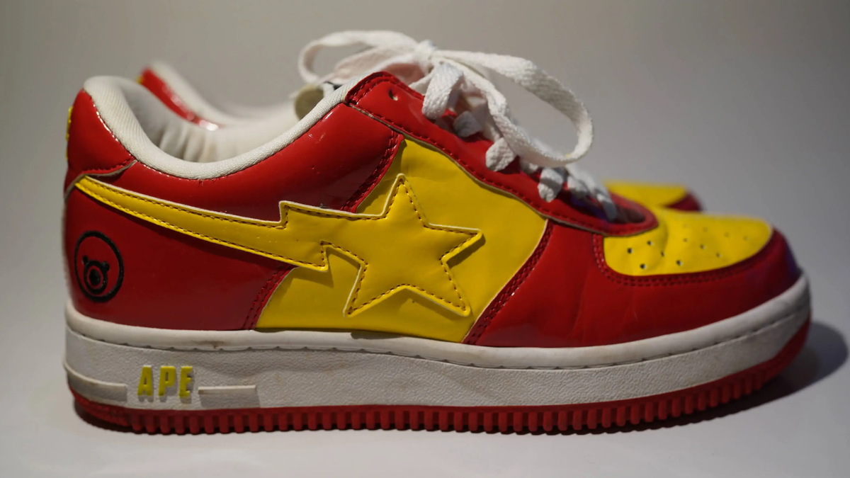 Nếu Kanye West và BAPE hợp tác sản xuất Bapesta vào năm 2019, nó sẽ cháy hàng ngay lập tức. Ngay cả trong năm 2007, trước khi Kanye West là Kanye, họ đã làm điều đó. Bapesta màu be-nâu-đỏ có hình chú gấu hoạt hình từ album Bỏ học đại học và Đăng ký muộn của Kanye, cũng như chữ “APE” ba màu trên đế giữa. Không giống như nhiều Bapestas, các đôi Kanye không có da sáng chế.