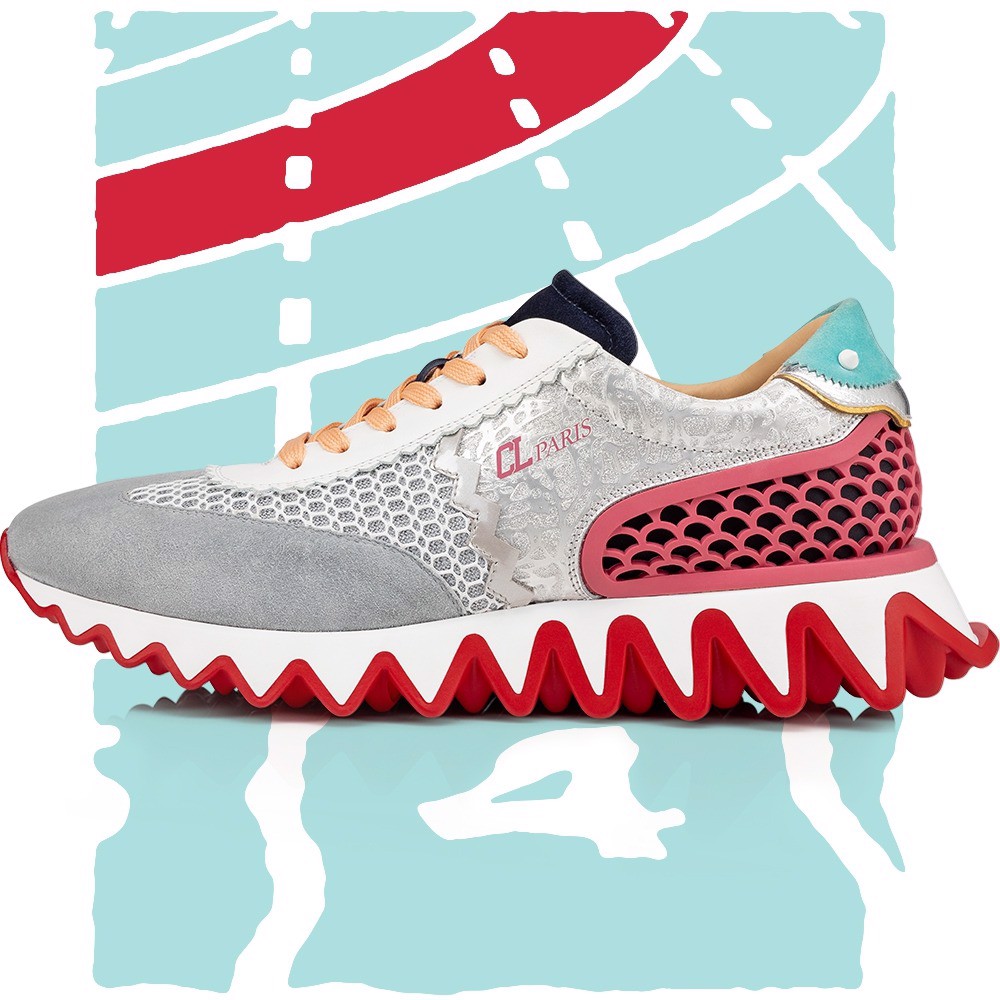 Loubishark lấy cảm hứng từ những đôi giày thể thao của những năm 70 với đường gờ đúc quá khổ gợi nhớ đến thiết kế mũi nhọn đặc trưng của thương hiệu. Tuy nhiên, nó được kết hợp khéo léo với tỷ lệ của phần đế, mũi giày tạo nên vẻ ngoài năng động nhưng vẫn đảm bảo sự thanh lịch đúng chất Louboutin. Riêng phần gót cao su được đúc với hoa văn hình con sò, lấy cảm hứng từ cửa hàng đầu tiên của Louboutin ở Galerie Véro Dodat tại Paris. Ngoài ra, sự phá cách lần này còn nằm ở sự chơi màu của nhà mốt, khi kết hợp màu đỏ biểu tượng với màu trắng quang học tạo nên một ấn tượng thị giác mạnh. Yếu tố này dễ dàng “lôi kéo” sự chú ý của người đối diện, vừa thể hiện năng lượng vui tươi và có phần nổi loạn của người mặc.