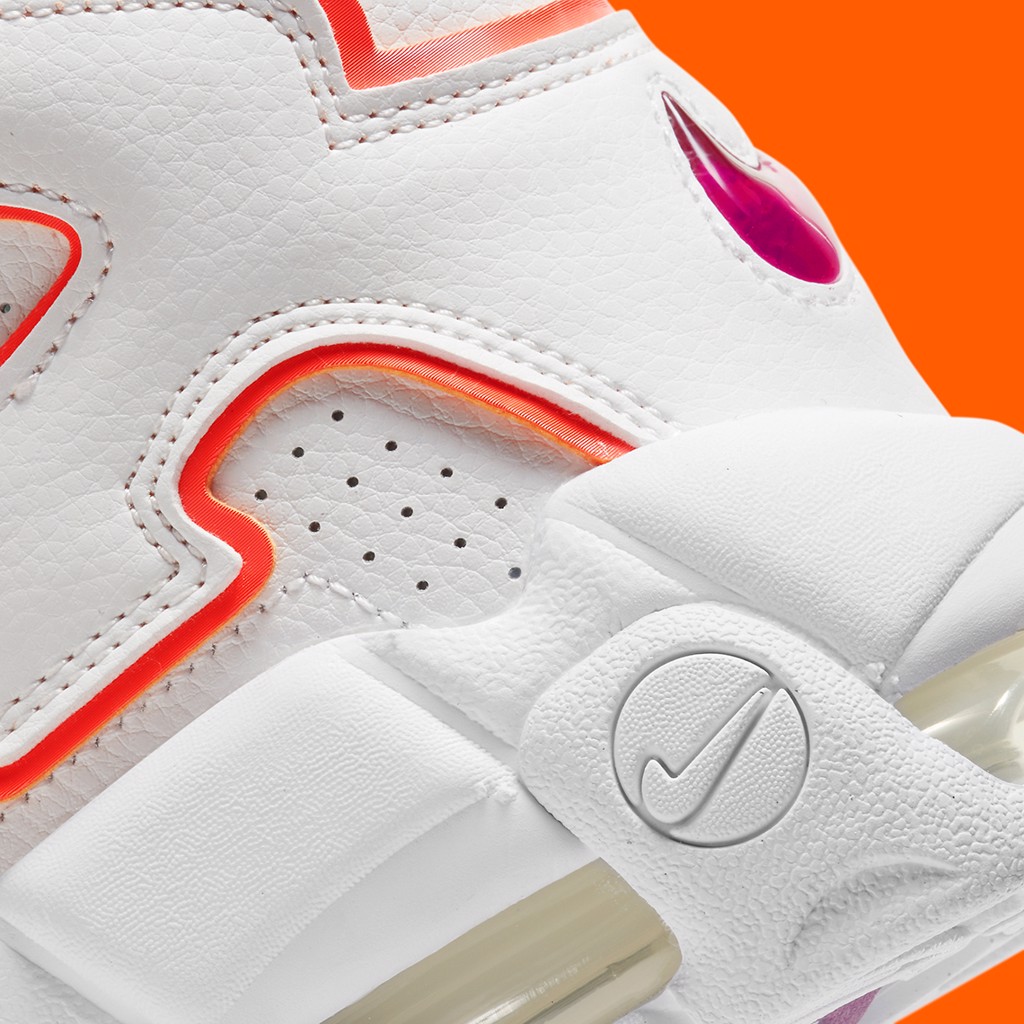 Hơn hai thập kỷ sau, Air More Uptempo tiếp tục quay đầu và tất cả những gì nó thực sự cần để đạt được điều đó là giới thiệu với các màu sắc quen thuộc. Phiên bản mới nhất này lấy tông màu chính là trắng toàn phần sử dụng màu tím và cam thân thiện với ánh nắng mặt trời (cũng là một mặt hàng chủ lực của những năm 90), với điểm nhấn mạnh hơn là bóng màu cam khi nó được nhìn thấy trên đường viền AIR và lưỡi vinyl trong suốt. Màu tím chỉ xuất hiện với một logo duy nhất trên đế và miếng ngọc ở gót.