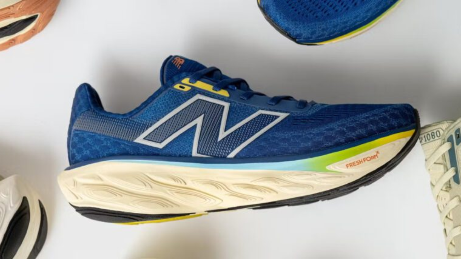 Trọng tâm của New Balance 1080v14 nằm ở phần đệm Fresh Foam X, vốn được đánh giá cao trong nhiều năm qua. Với chiều cao đế 38 mm ở gót và 32 mm ở mũi, độ chênh 6 mm, lớp đệm này mang lại trải nghiệm êm mềm, đàn hồi, giúp giảm áp lực cho khớp khi chạy dài. So với thế hệ trước, v14 có cấu trúc phần giữa bàn chân được điều chỉnh, giúp bước chạy linh hoạt và tự nhiên hơn, đồng thời vẫn giữ được sự ổn định và độ bền vốn có. Điều này khiến 1080v14 phù hợp cho nhiều mục đích: từ chạy phục hồi, chạy dài đến tập luyện hằng ngày.