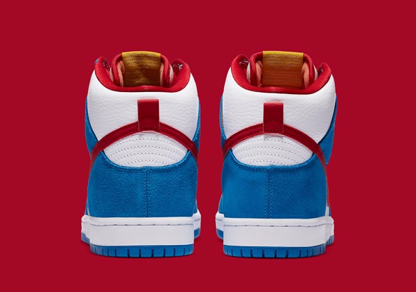 Tin đồn xung quanh mẫu giày này được leak ra khoảng hai tháng trước và dự kiến sẽ ra mắt vào mùa thu. Nhưng mãi đến tận hôm nay chúng ta mới biết được tên thật và hình ảnh chính thức của đôi SB Dunk High này. Ba màu chủ đạo là đỏ, xanh lam và trắng làm chúng ta dễ dàng liên tưởng tới chú mèo máy quen thuộc đi cùng tuổi thơ của bao người.