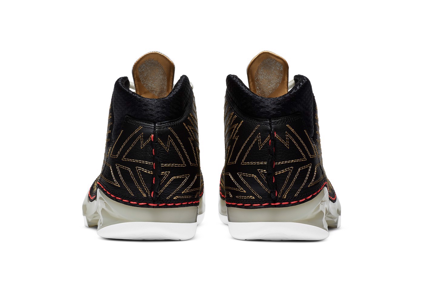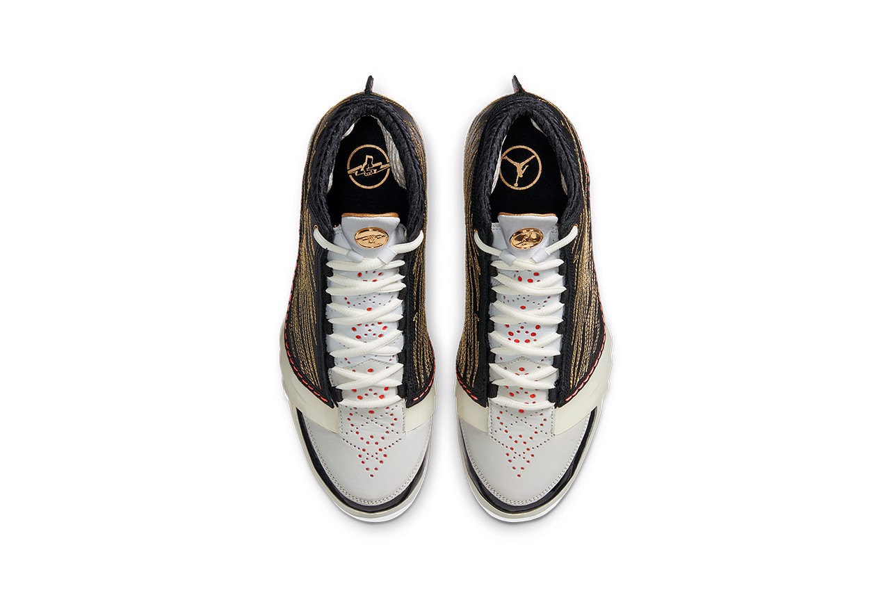 Để cân nổi bật thêm đôi giày, phần lưỡi và đầu mũi giày được làm bằng một lớp da trắng, cả hai đều nhô ra ngoài với các điểm màu đỏ điểm xuyết. Ngoài ra, thương hiệu cũng được in trên các tấm lót chân và lưỡi giày với huy hiệu TITAN mạ vàng ở bên chân phải và phù hiệu Jumpman ở bên trái.