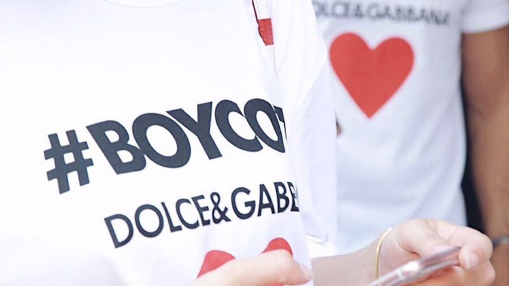 Giống như nhiều người nổi tiếng khác, Melania Trump đã dành cho thương hiệu này một tình yêu mãnh liệt. Tuy nhiên, khi Dolce & Gabbana đích thân thiết kế trang phục cho cựu đệ nhất phu nhân vào năm 2017, giới truyền thông cho rằng đó là sự ủng hộ cho hoạt động chính trị của chồng bà. Ngay sau đó, những người tiêu dùng bất bình đã tổ chức một cuộc tẩy chay trên mạng xã hội và thực tế. Không bị phá hoại như mọi khi, D&G đã trả đũa bằng cách tạo ra những chiếc áo phông “#Boycott Dolce & Gabbana” của riêng họ.