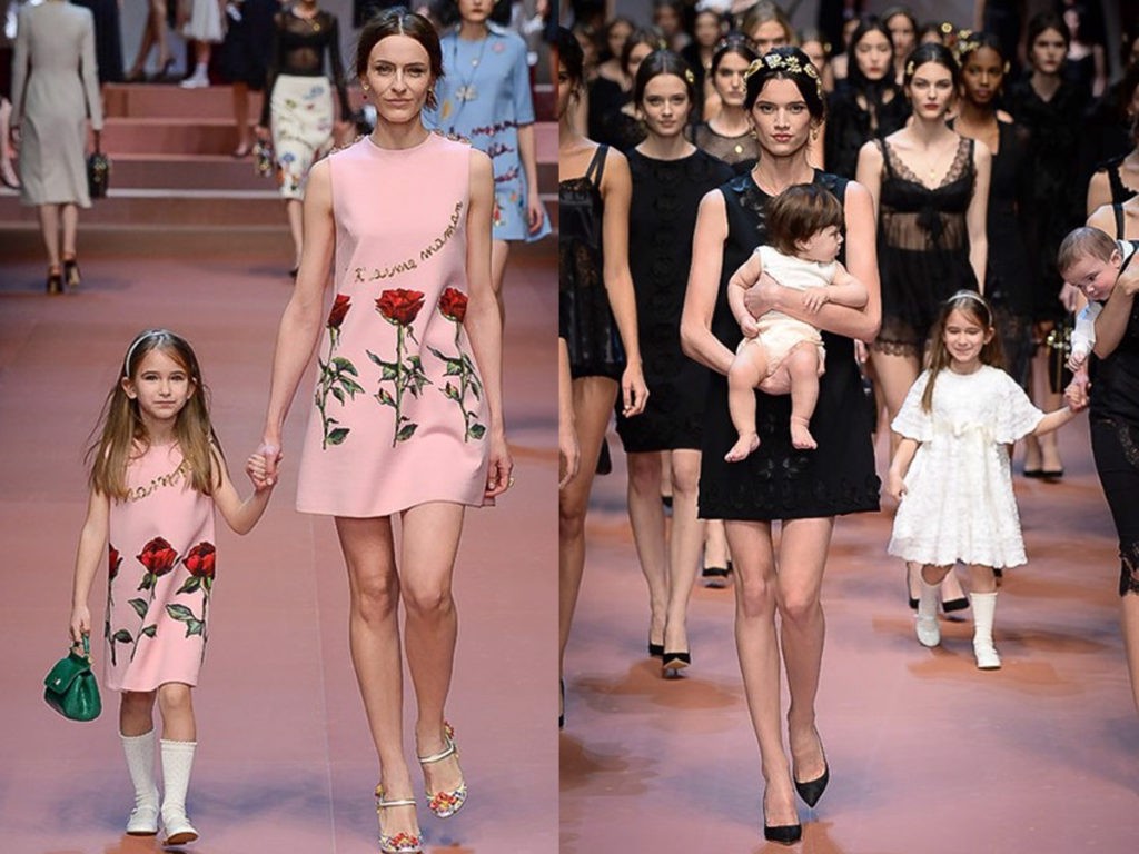 Bộ sưu tập ready-to-wear mùa thu 2015 của D&G là sự tôn vinh gia đình và tình mẫu tử. Đường băng có sự góp mặt của 11 bà mẹ trên sân khấu cùng các con của họ, bao gồm cả người mẫu Ý đang mang bầu, Bianca Balti. Đương nhiên, điều này đòi hỏi một hậu trường vườn trẻ đầy đủ. Hơn nữa, bản in của họ dựa trên bản vẽ của các cháu gái và cháu trai của Domenico.