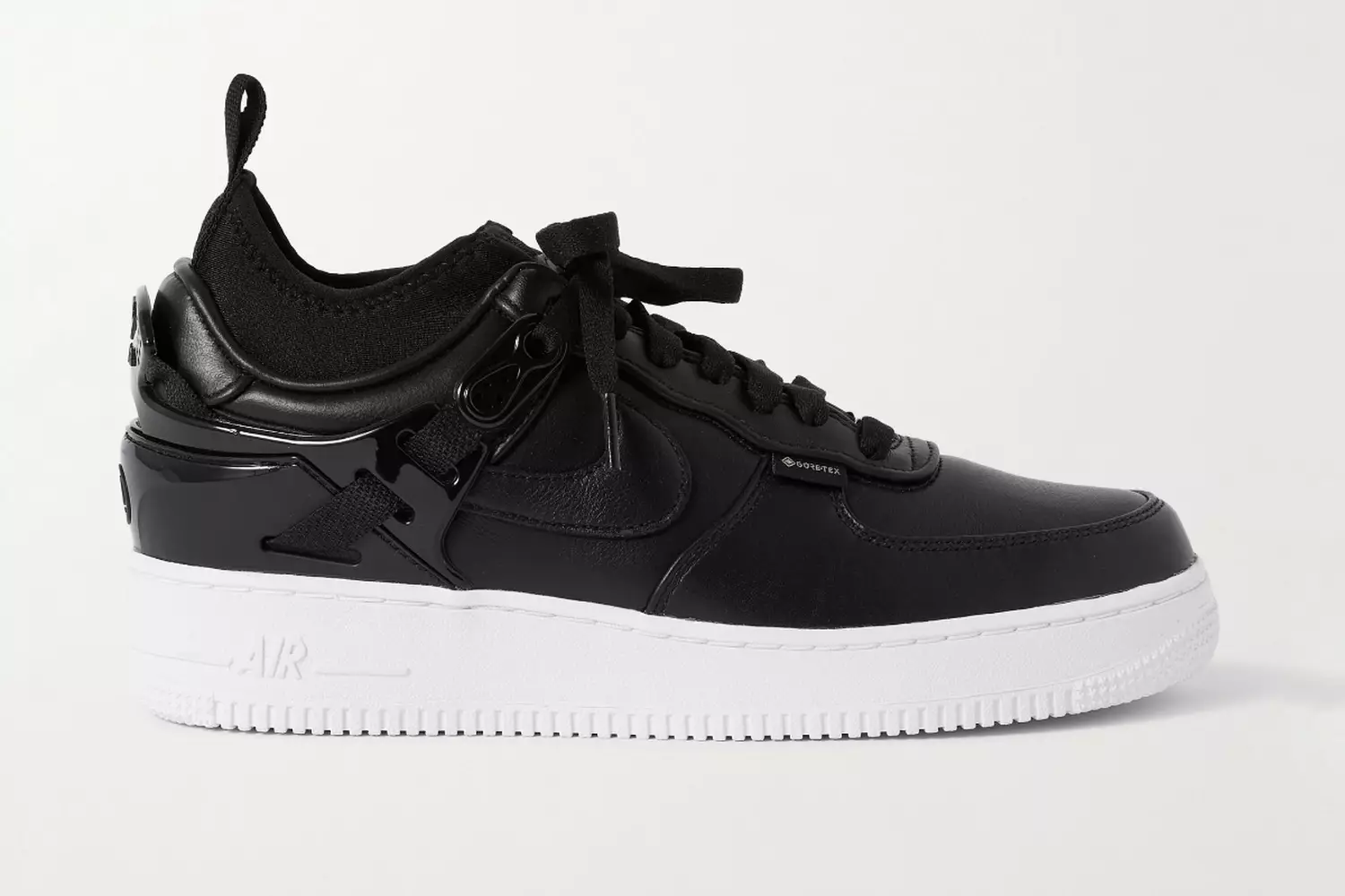 Không giống như những đôi giày Nike Air Force 1 màu trắng tiêu chuẩn của bạn, Nike x Undercover Air Force 1 đi kèm với hệ thống dây buộc phức tạp và mặt trên GORE-TEX. Như chúng ta đã mong đợi từ sự hợp tác của Undercover với Nike, đây là một mẫu giày thể thao bắt mắt.