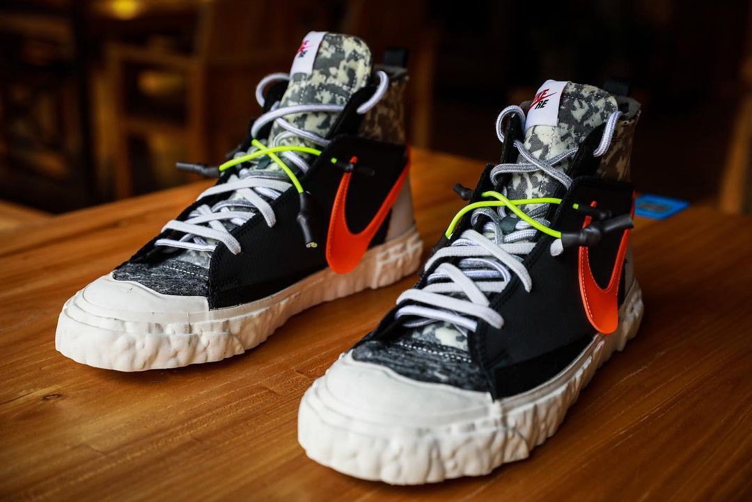 Sự hợp tác giữa Nike x READYMADE Blazer Mid đã gây xôn xao những người đam mê giày thể thao với thiết kế độc đáo và cấu trúc chắp vá. Vẻ ngoài giải cấu trúc và kích thước méo mó của giày chính là chi tiết cho thấy cách tiếp cận thiết kế DIY vô cùng độc đáo của READYMADE. Bất chấp sự hoài nghi ban đầu, việc sử dụng vật liệu tái chế và thẩm mỹ hậu hiện đại đã khiến phiên bản hợp tác này trở thành một trong mẫu thiết kế được săn đón nhiều nhất trong năm. Đáng chú ý, logo Swoosh trên giày cũng là một điểm nhấn độc đáo làm tăng thêm vẻ ngoài đặc biệt của mẫu thiết kế này.