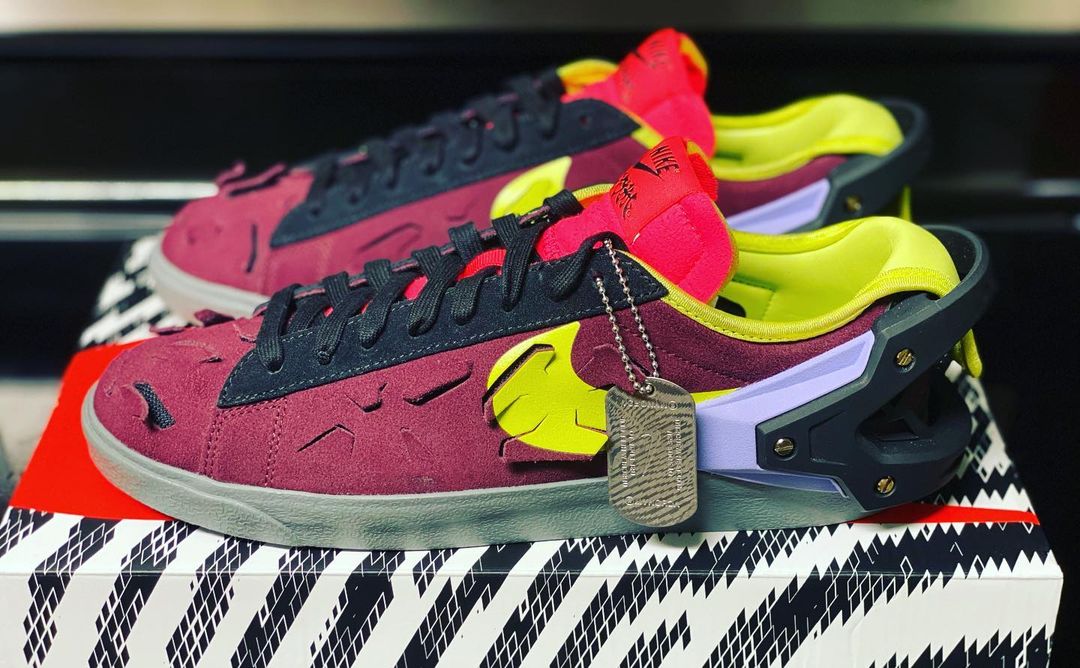 KAWS x sacai x Nike Blazer Low ‘Purple Dusk’ là phiên bản giày thể thao đánh dấu sự hợp tác của Chitose Abe với nghệ sĩ KAWS có trụ sở tại Brooklyn. Mẫu thiết kế này sở hữu phần upper bằng da màu tím với các điểm nhấn bao gồm các chi tiết xếp chồng, logo Swooshes bằng da lộn và chữ ký ‘XX’ của KAWS tô điểm cho phần midsole.