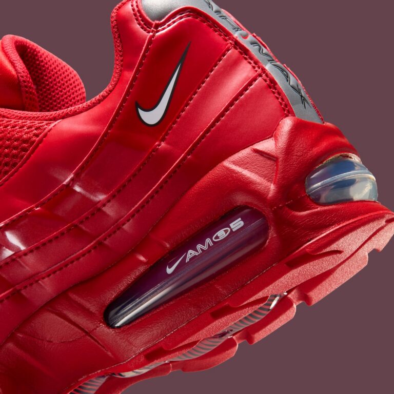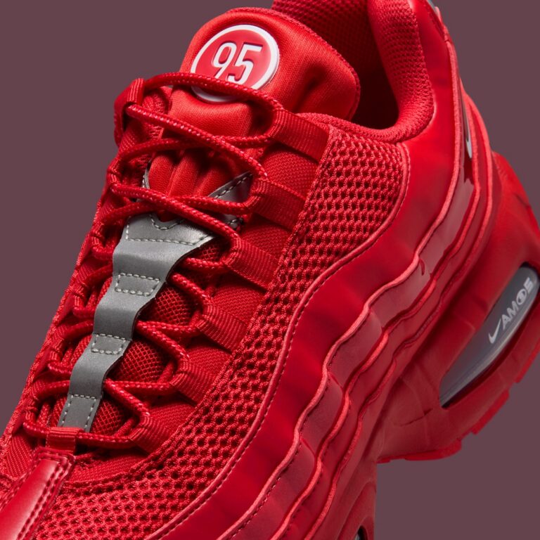 Không có gì “nhẹ nhàng” ở phiên bản này khi toàn bộ đôi giày được bao phủ bởi sắc đỏ rực từ trên xuống dưới. Ngay từ cái nhìn đầu tiên, đôi Air Max 95 này mang lại cảm giác mạnh mẽ, nổi bật và có phần táo bạo hơn so với những phối màu truyền thống.