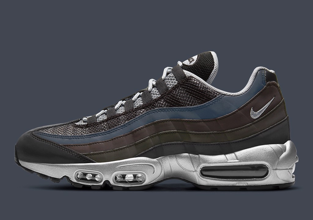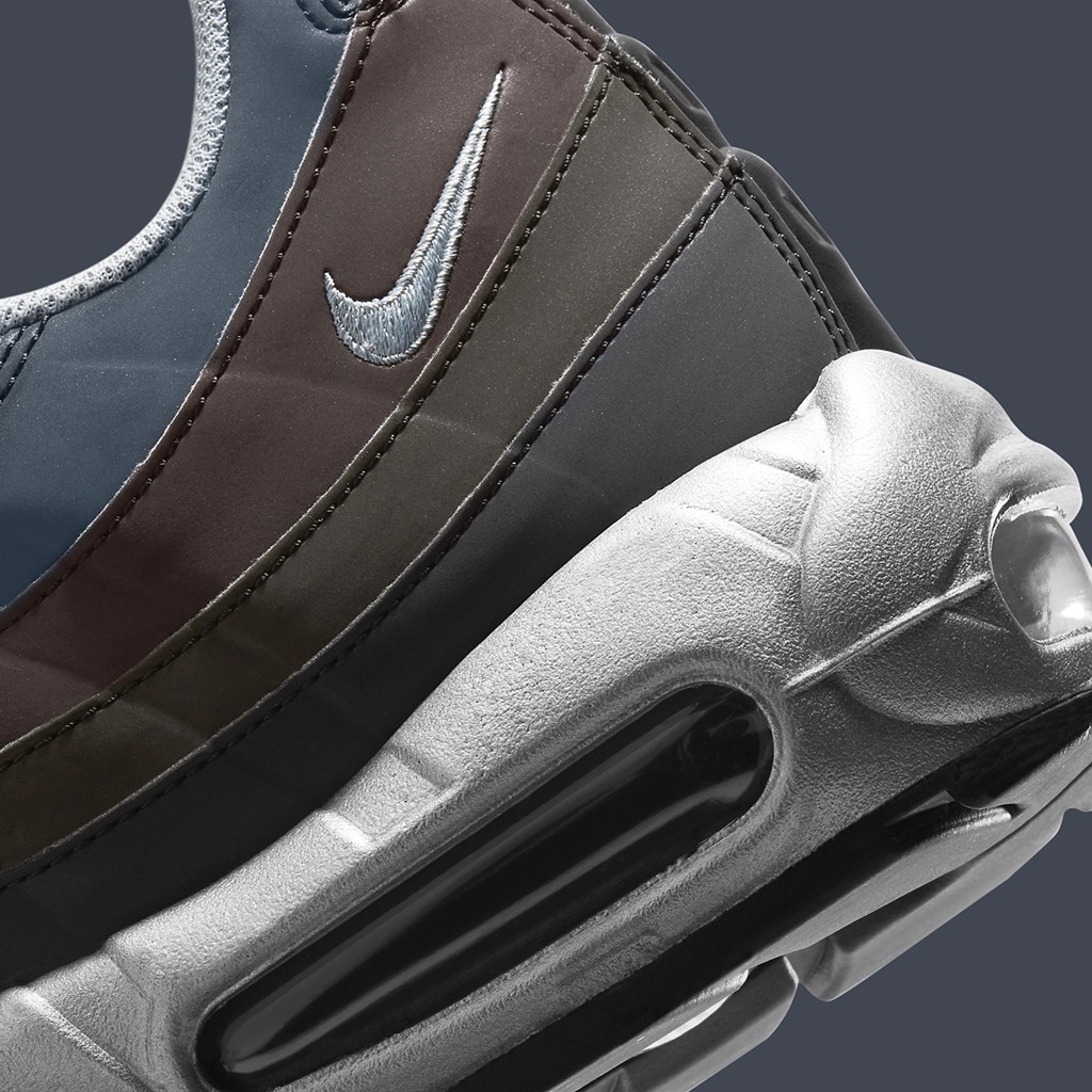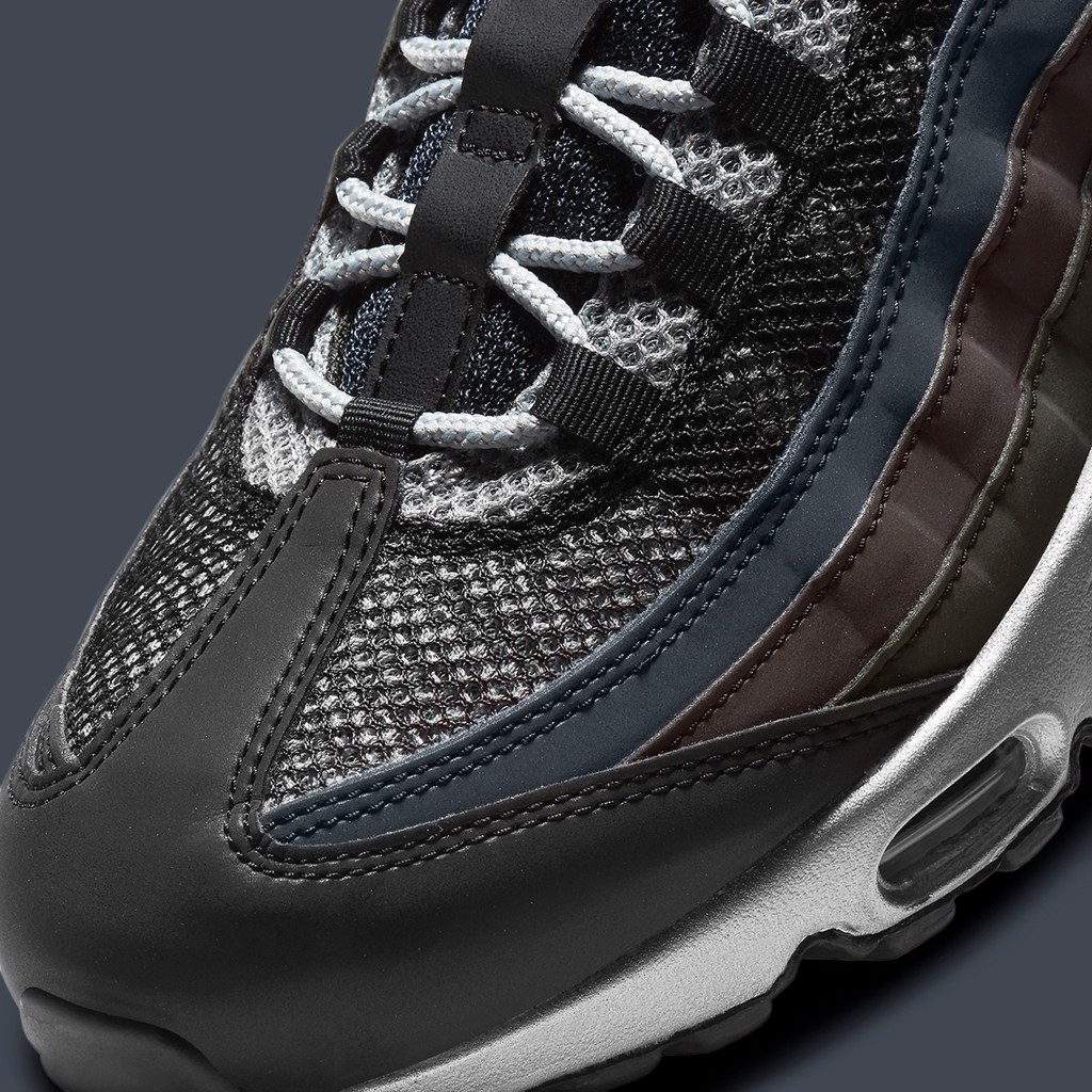 Điều đặc biệt đến từ việc đôi giày đặt trên một bộ đế màu “Metallic Silver” cực đẹp và sang trọng tạo nên một vùng đất màu mỡ trên đôi Air max 95 phiên bản “núi rừng” lần này.
