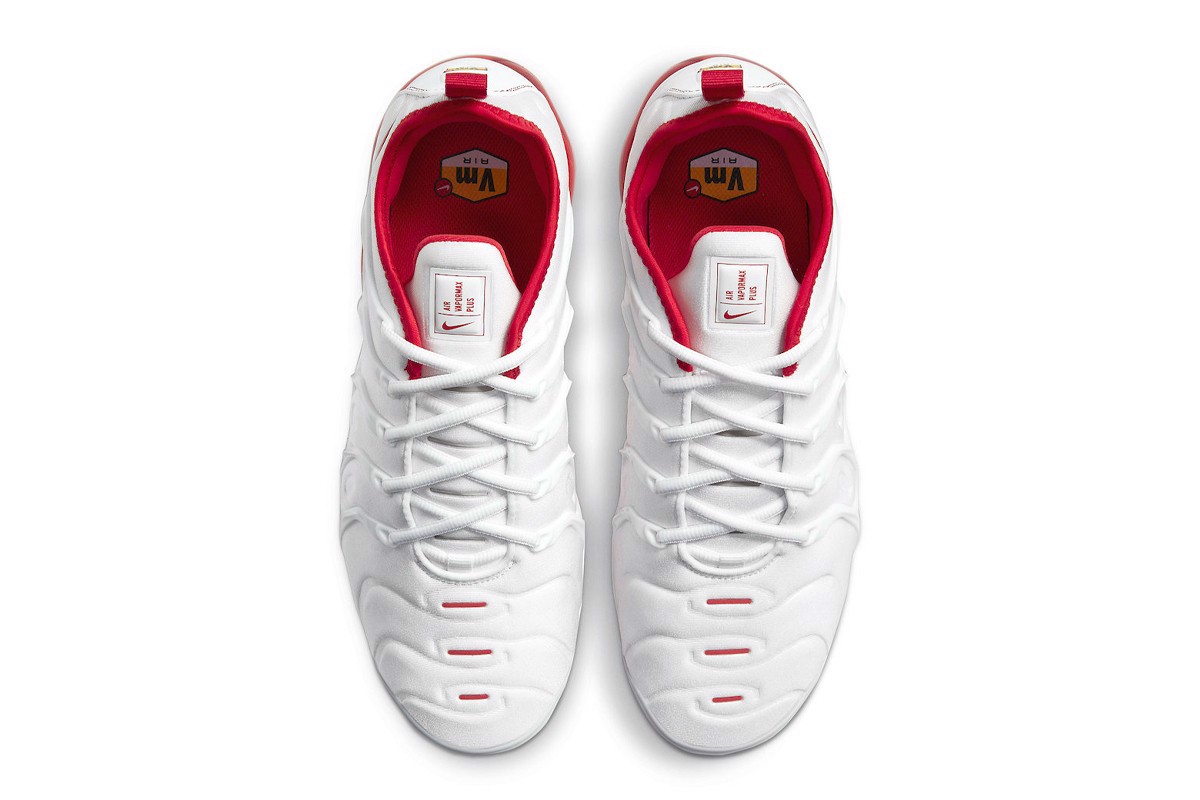 Đến với Varsity Red and White cổ điển không thể nhầm lẫn, đôi giày thể thao hai tông màu đơn giản này là một trong nhiều phiên bản VaporMax mà Nike đã phát hành trong những năm qua. Đôi giày được khoác lên mình một lớp sơn tổng hợp neoprene, màu trắng sạch, rõ ràng. Gót da và lớp phủ nhựa đặc trưng của nó được nhìn thấy ở ngón chân và mặt bên cũng có màu trắng để hòa vào phần trên trắng như tuyết nguyên sơ.