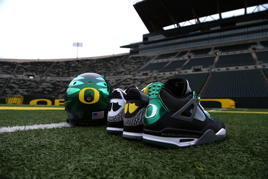 Phiên bản Jordan đầu tiên khai mở cho kỷ nguyên của bộ colla này là Jordan 9 “Oregon Ducks”. Đôi giày này được thiết kế cho các cầu thủ bóng bầu dục của Oregon mang trước khi trận đấu tranh cúp BCS diễn ra vào năm 2011. Phiên bản 9s này khá đặc biệt với phối màu Dark Green và những detail trên thân giày được tô với các màu Black, White và Metallic Silver. Chất liệu da lần này là Nubuck và điểm nhấn của đôi giày là logo “O” truyền thống của Oregon và số áo “23” của MJ ở phần heeltabs. Mức giá resell của đôi giày này rơi vào khoảng $2500 cho một đôi.