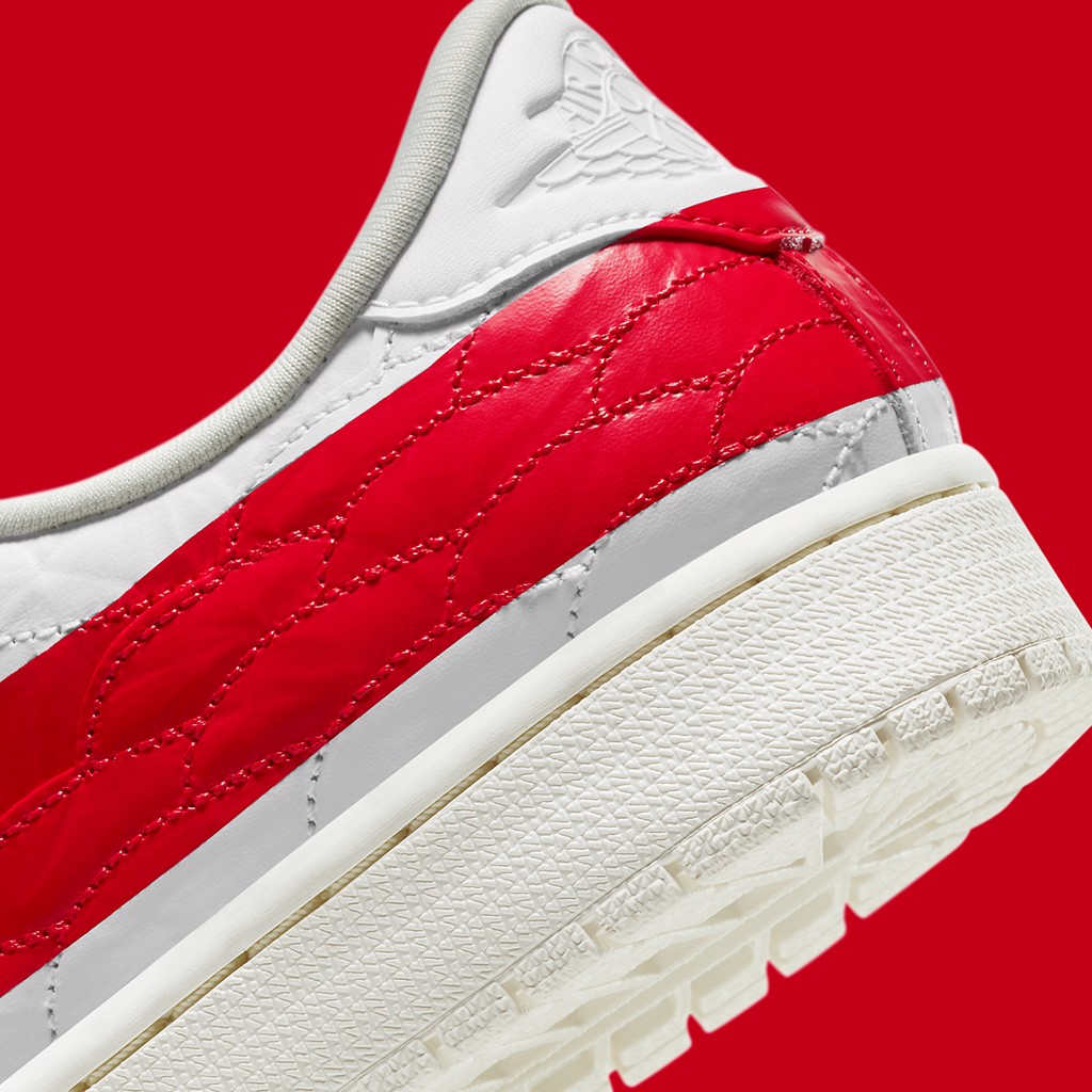 Thay vào đó đôi Jordan 1 Low “Banned” này chỉ đơn giản là một thiết kế All White với một đường màu đỏ ngắn chạy ngang upper qua phần lừng giày. Và theo cùng một kiểu dáng, chiếc giày Jordan dáng thấp được đánh dấu phía trên bằng một đường sọc màu đỏ đậm, các cạnh của hình dạng lởm chởm, không được tinh chỉnh trong màu sắc của nó. Bên dưới, đường màu trắng tương tự với phiên bản của OG, mang đế mang màu ố vàng, kiểu cổ điển và phần trên màu trắng hoàn toàn.