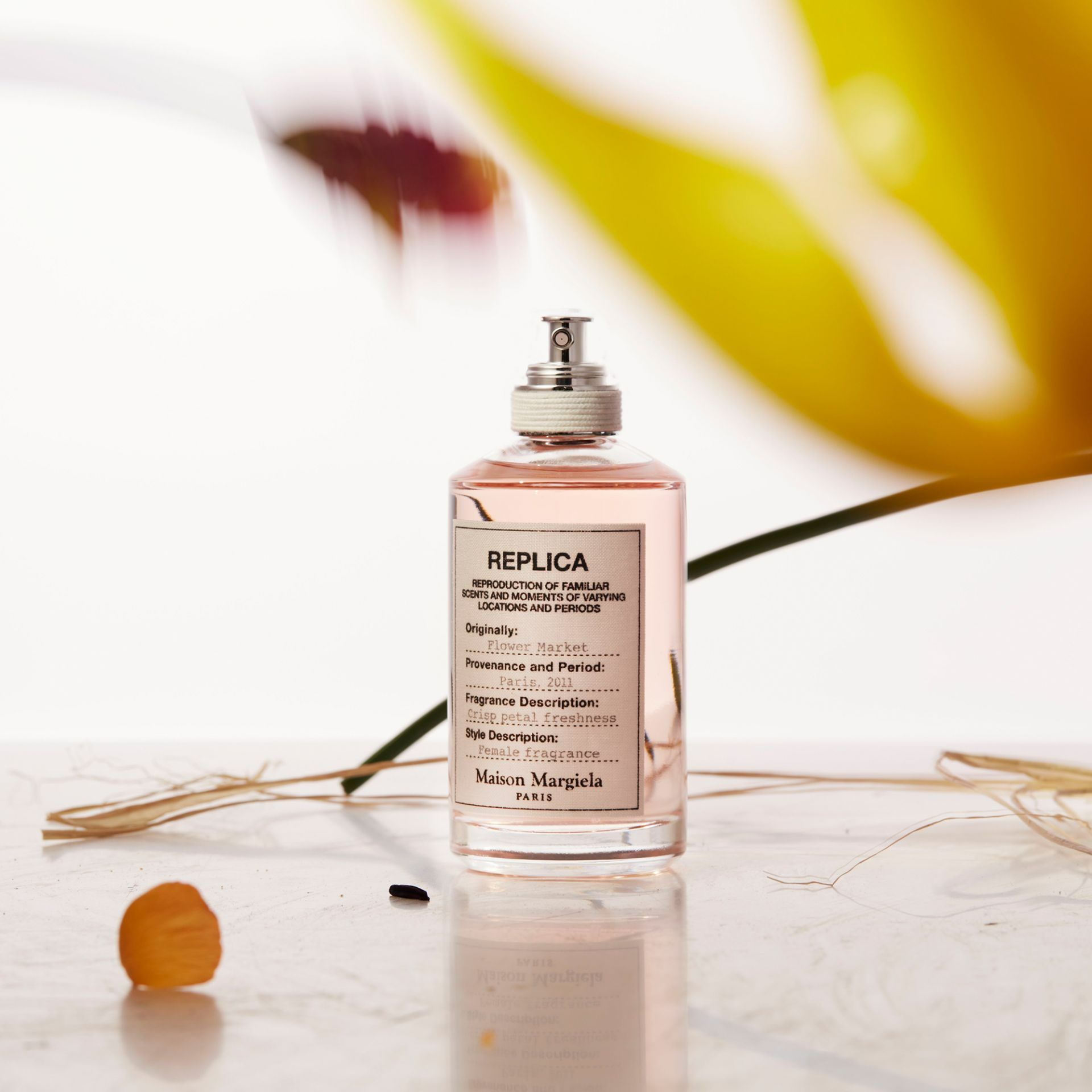 Nước hoa nữ Replica Flower Market EDT của thương hiệu Maison Margiela được ra mắt năm 2012. Đây là chai nước hoa thuộc bộ sưu tập nước hoa mới mang tên Replica chai dành cho nữ giới là Flower Market, Beach Walk và Funfair Evening.