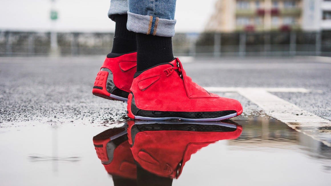 Lấy cảm hứng từ môn thể thao mô tô như một lời tri ân cho niềm đam mê đua xe và tốc độ cao của Micheal Jordan, AJ 18 gợi nhớ tới hình ảnh những chiếc xe đua của giải đấu F1, khiến người ta liên tưởng tới dáng vẻ những đôi giày lái xe truyền thống và đâu đó bóng dáng các chi tiết được tìm thấy trong thiết kế của những đôi giày cao cấp từ nước Ý. Điều này mang tới vẻ bóng bẩy và đầy phóng khoáng cho đôi sneaker này.