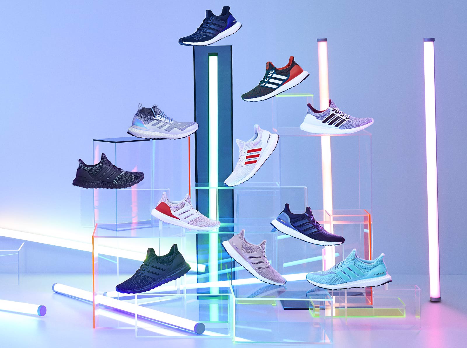 Cho tới hiện tại, UltraBoost đã trải qua 5 phiên bản cùng hàng nghìn phối màu bắt mắt, từ phổ thông cho tới những phân khúc cao hơn. Đặc điểm chung nhất đó là thiết kế không có quá nhiều thay đổi với phần trên là vải primeknit co giãn siêu đỉnh cùng bộ đế được đúc từ hàng nghìn hạt boost nhỏ đem lại khả năng chuyển hồi năng lượng. Mỗi khi diện đôi giày này, ta cảm giác như đang đi trên mây nhờ sự hỗ trợ cực tốt bởi các công nghệ mới nhất được nâng cấp theo từng phiên bản.