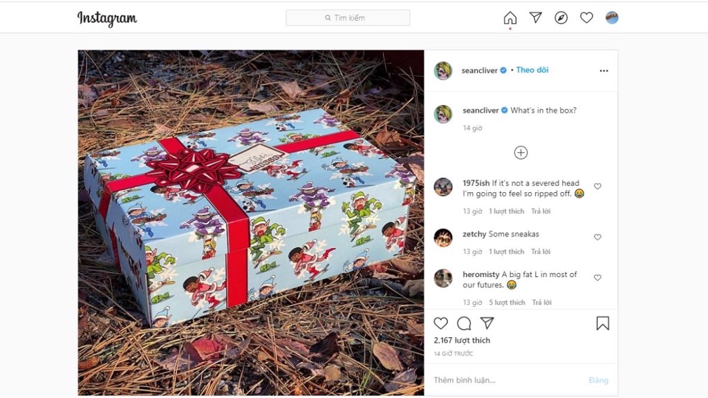 Đôi giày lần đầu xuất hiện thông qua Instagram của chàng nghệ sĩ ván trượt Sean Cliver trong một đoạn giới thiệu về món quà Giáng sinh được quấn và trang trí bằng ruy băng.