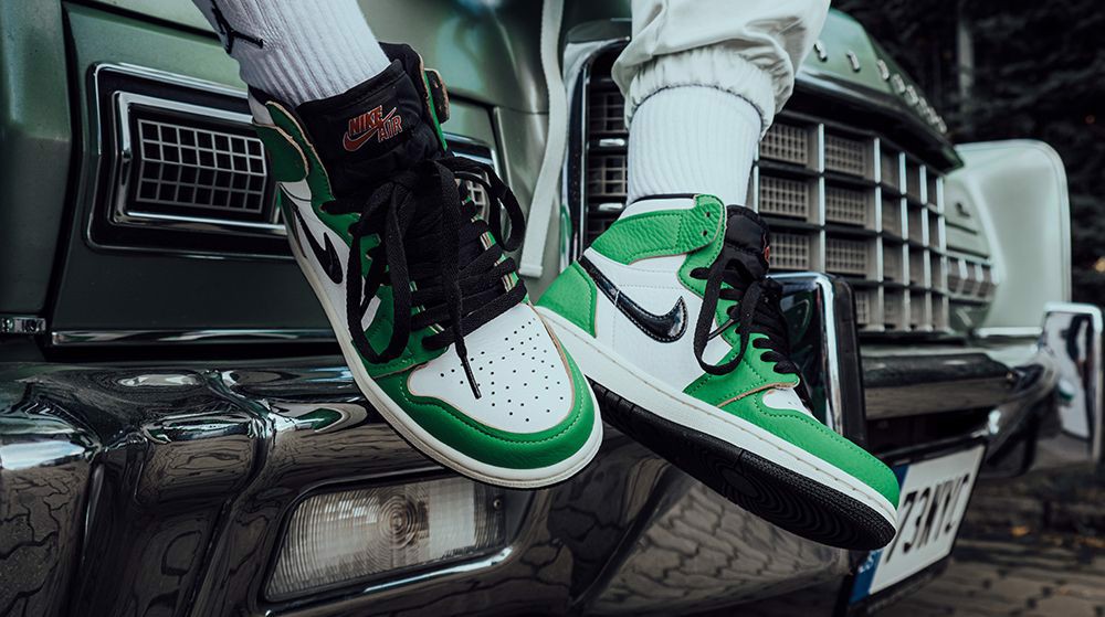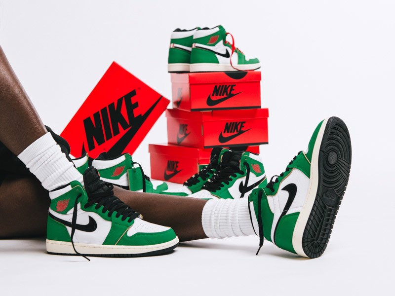 Với phối màu Lucky Green, ta cảm thấy có sự quen thuộc, có lẽ do những nét tương đồng mà nó giữ với một trong những phối màu của Nike Dunk rất được yêu thích, chính là “Heineken Dunks”(biệt danh bày tỏ lòng kính trọng đối với một loại bia đến từ Hà Lan. Biểu tượng dấu Swooshes đặc trưng của Nike có màu đen hiện diện trên cả 2 mặt giày. Các phần logo khác như Nike Air, Nike Swoosh, logo đôi cánh xuất hiện với màu đỏ, tạo sự tương phản giữa phần da màu xanh lá và phần da trắng. Việc sắp xếp màu sắc một cách cổ điển mang lại cho chúng tôi cảm giác hoài cổ xuyên suốt, mà chúng tôi hoàn toàn yêu thích