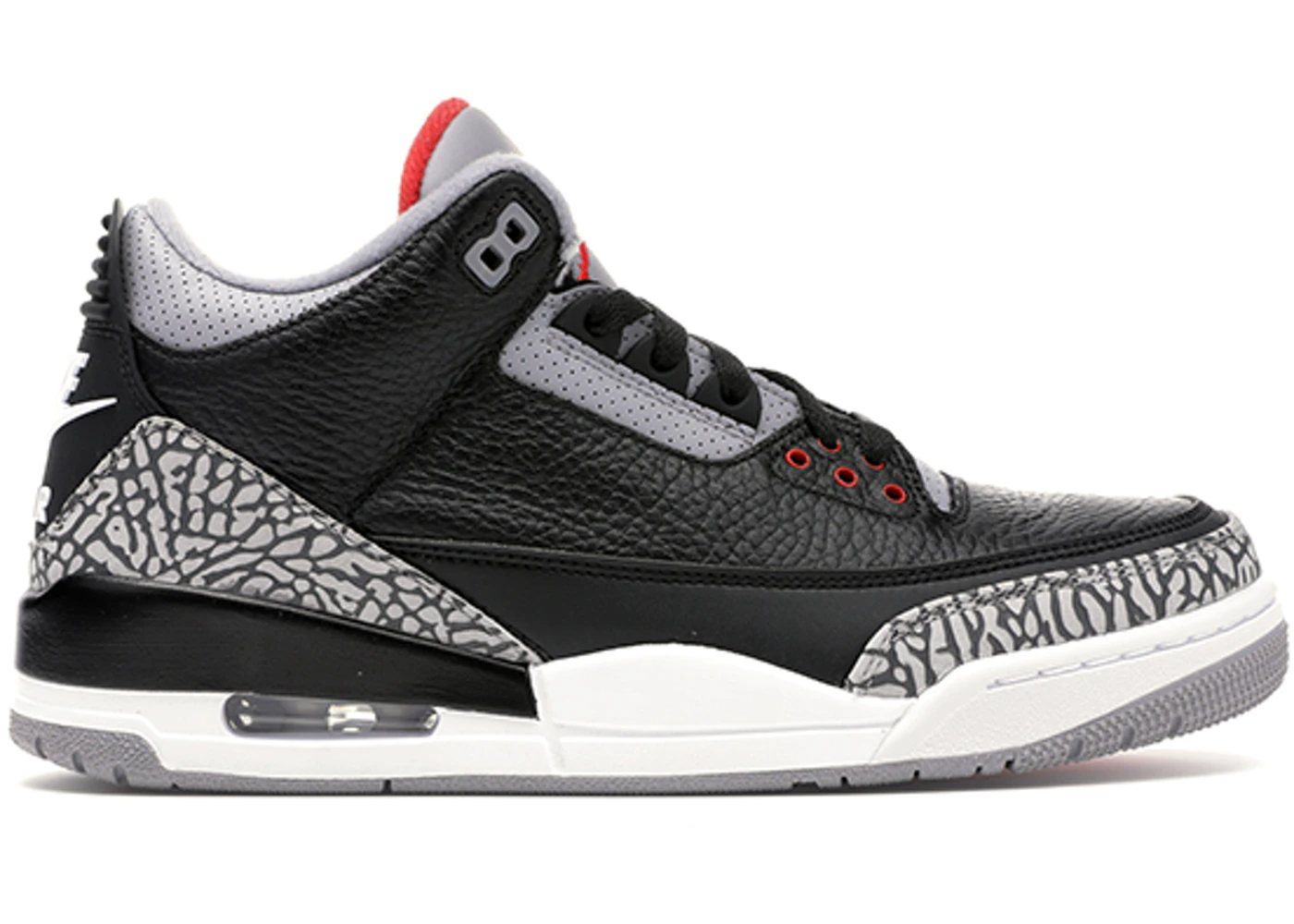 Vào năm 2018, Jordan 3 Retro OG đã mở một kỉ nguyên cho chính cái tên của nó. Đây chính là lần đầu tiên, logo “Nike Air” được xuất hiện trên đôi Black Cement kể từ khi ra mắt vào năm 2001. Jordan 3 Black Cement mang trên mình một họa tiết da voi được ra mắt vào sinh nhật lần thứ 55 của ngài Airness (Micheal Jordan). Không thể nghi ngờ gì hơn, đây là một trong những đôi giày bạn phải có.