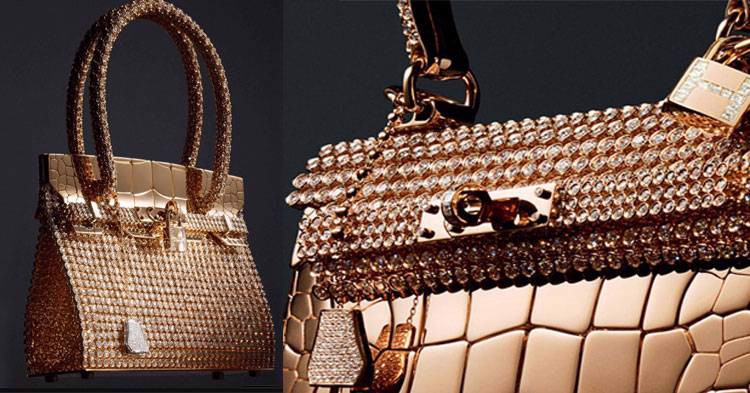 Thương hiệu xa xỉ Hermes đã hợp tác với nhà kim hoàn Pierce Hardy, để tạo ra chiếc túi xách độc đáo này. Nó đã được chế tác để giống da cá sấu và được làm bằng vàng hồng nguyên khối. Chiếc túi nhỏ, sang trọng và tuyệt đẹp được đính 1.160 viên kim cương. Chỉ có 12 chiếc túi như vậy từng được tạo ra, điều này càng làm tăng thêm giá trị của nó. Giá một chiếc Hermes Kelly Rose Gold là hơn 2 triệu USD.