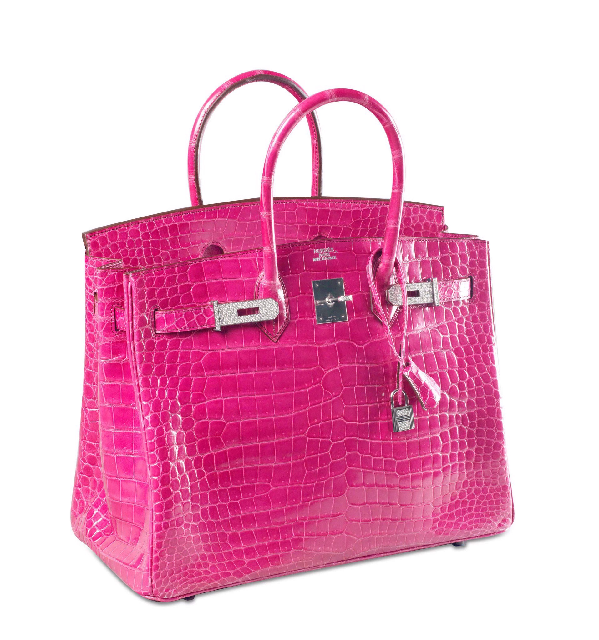 Đúng như tên gọi, chiếc túi xách này có màu hồng xinh xắn, nổi bật với chất liệu vàng trắng 18 cara đậm và bắt mắt cùng với những viên kim cương lấp lánh. Chiếc túi từng được bán trong một cuộc đấu giá của Christie’s ở Hồng Kông vào năm 2015 với giá 1,72 triệu đô la Hồng Kông. Nhưng ngày nay, nó được định giá là 222.000 đô la, tương đương với con số khổng lồ 3 triệu đồng Rand của Nam Phi. Là một trong những chiếc túi xách đắt nhất thế giới, Birkin đã tìm thấy một vị trí thích hợp cho riêng mình trong ngành công nghiệp túi thời trang hàng hiệu cao cấp.