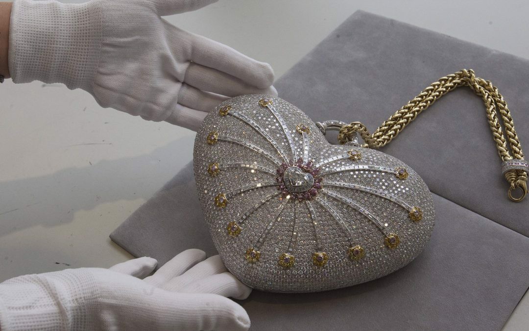 Một viên kim cương màu sắc rõ nét 5.04 carat, kim cương trong suốt của VS1 nằm ở trung tâm của ly hợp hình trái tim, với thiết kế pháo hoa bao quanh, kết hợp 7.89 cara màu hồng sống động lạ mắt và 7.66 cara kim cương màu vàng sống động lạ mắt, với baguette trắng và kim cương tròn được đặt trong một phong cách mở đường. Chiếc túi xách đặt làm riêng đã được sách kỷ lục Guinness thế giới ghi nhận là chiếc ví đắt nhất, cho đến nay nó là một trong những chiếc ví kim cương đắt nhất thế giới.
