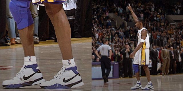 Trong mùa giải ’02 / ’03, Kobe đã xuất hiện cùng một số phiên bản PE nổi tiếng của Reebok Question Mid – nhưng chắc chắn đây là phiên bản yêu thích nhất. Mang trên mình lớp áo bằng da lộn màu trắng cao cấp được tạo điểm nhấn bằng phần mũi giày và logo Reebok Vector màu tím. Không mất nhiều thời gian đôi giày đã trở thành niềm khao khát của các sneakerhead mặc dù mẫu này chưa bao giờ được sản xuất.