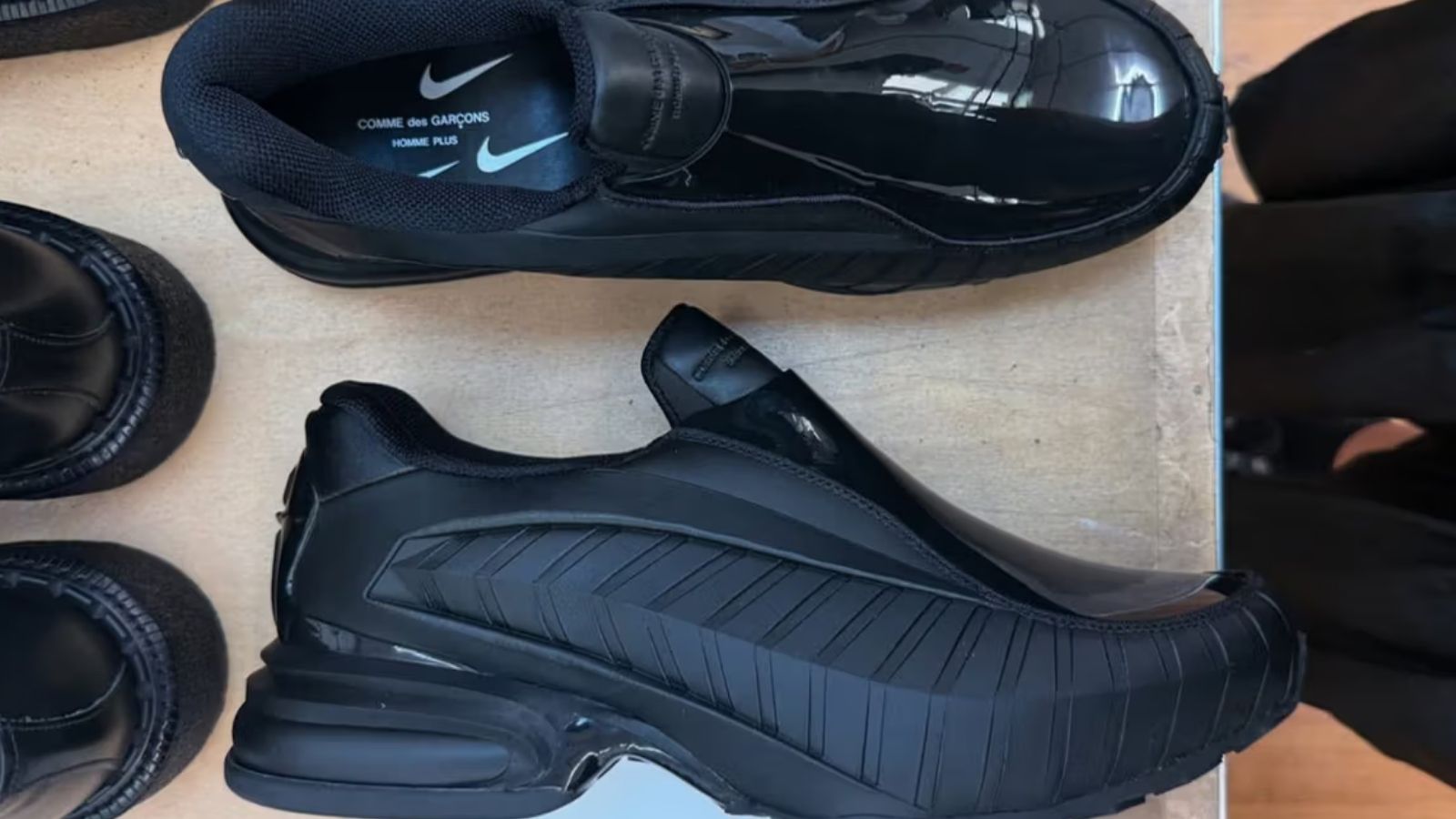 Sàn diễn tại Paris của COMME des GARÇONS chưa bao giờ chỉ là về quần áo, và mùa này cũng không ngoại lệ khi “đội quân” sneaker hợp tác của họ đổ bộ đầy ấn tượng. Tâm điểm đầu tiên là màn tái xuất của Nike Air Max Dolce, một di sản từ năm 2002 được dòng CdGH+ làm mới đầy táo bạo.