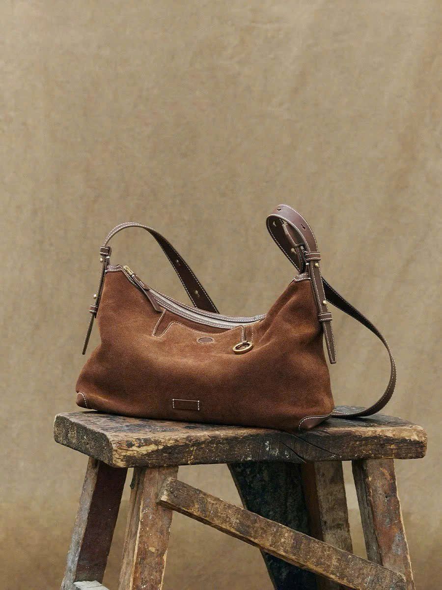 Cách phối: Túi da lộn lý tưởng với trang phục boho như váy hoa và sandals. Hoặc mix với denim để tạo sự tương phản. Tại show Chloé, túi da lộn được kết hợp với tua rua, tăng thêm chiều sâu. Nhược điểm là da lộn dễ bẩn và cần bảo dưỡng kỹ, đặc biệt dưới mưa. Xu hướng này phản ánh sự quay về với chất liệu tự nhiên, thân thiện với môi trường.